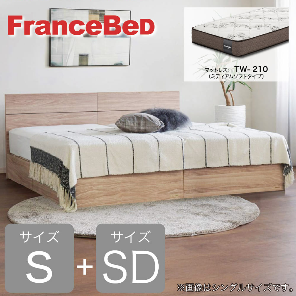 [フランスベッド] シングルセミダブルツインベッド エコモア01F 引出付 TW−210 ライトウォールナット