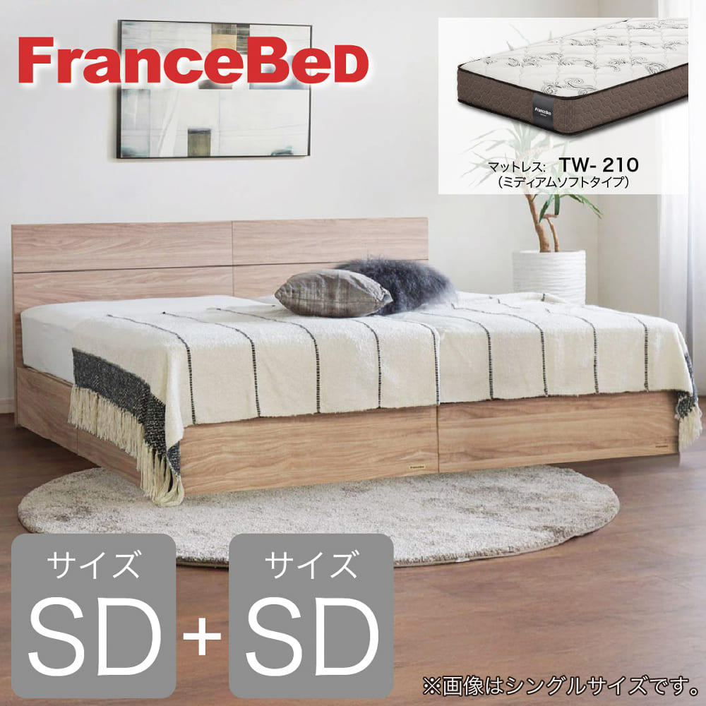 [フランスベッド] セミダブルツインベッド エコモア01F 引出付 TW−210 ライトウォールナット