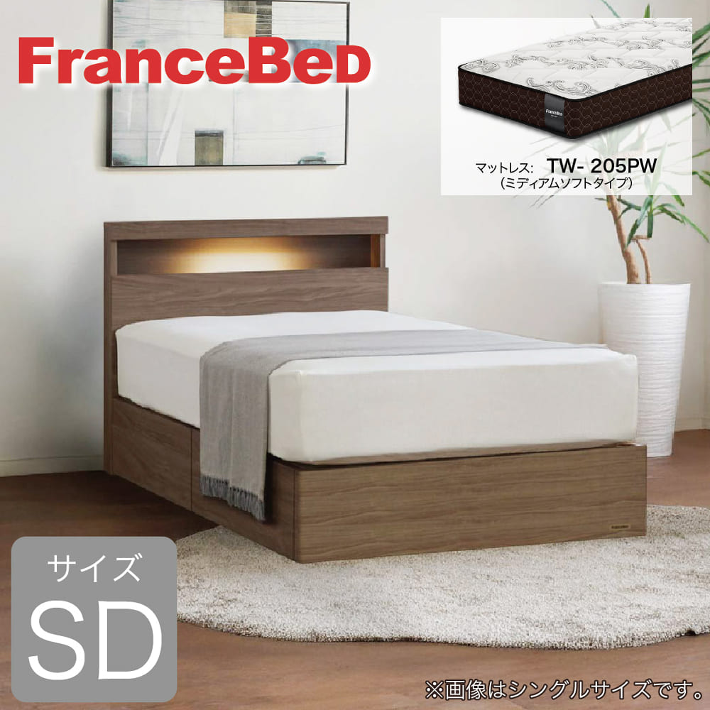 [フランスベッド] セミダブルベッド エコモア02C 引出付 TW−205PW ウォールナット