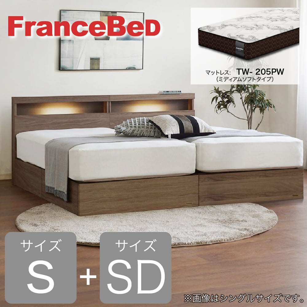 [フランスベッド] シングルセミダブルツインベッド エコモア02C 引出付 TW−205PW ウォールナット
