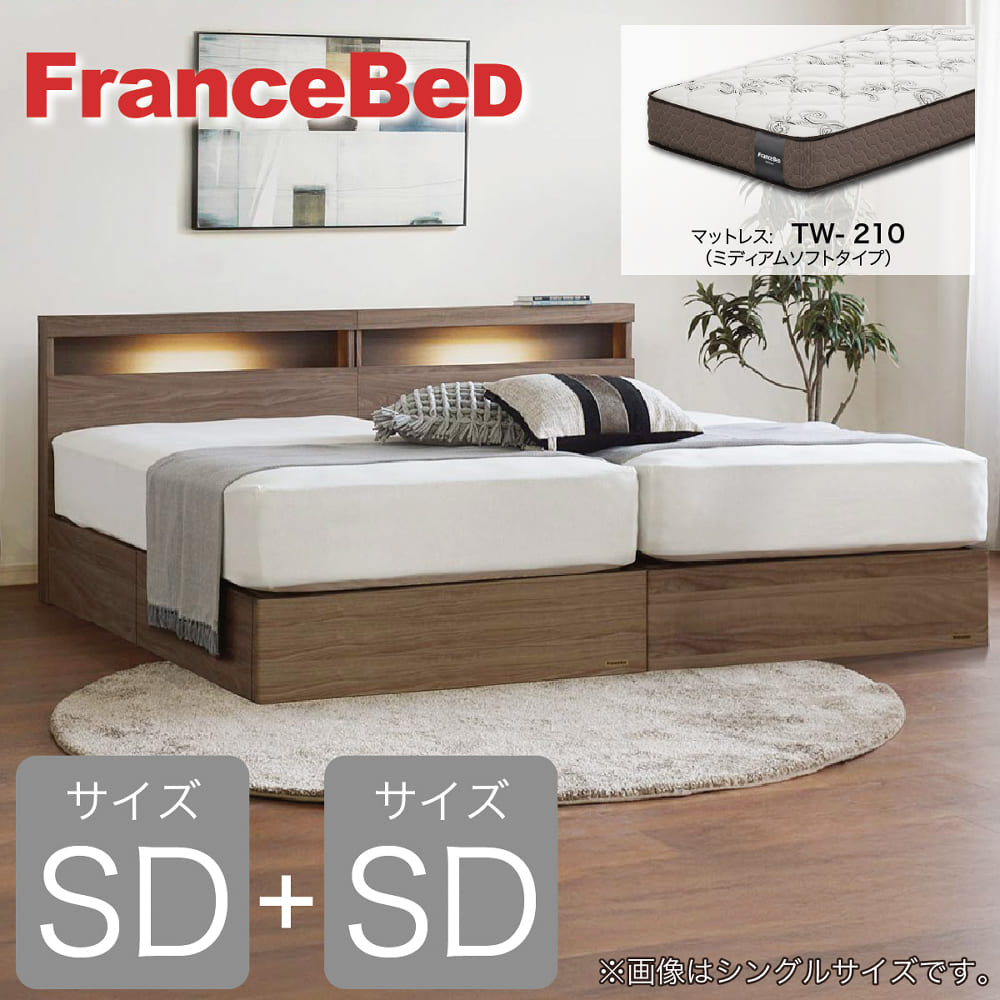 [フランスベッド] セミダブルツインベッド エコモア02C 引出付 TW−210 ウォールナット