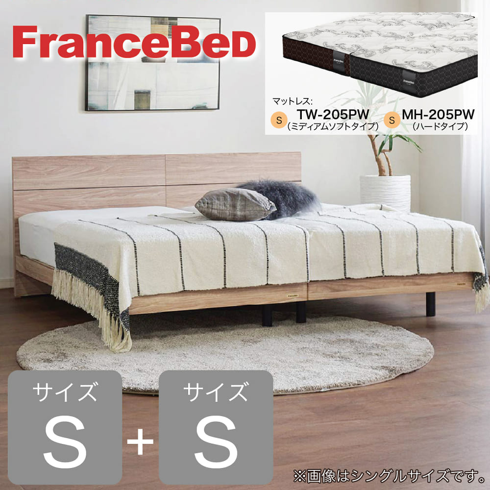 [フランスベッド] シングルツインベッド エコモア01F 脚付 TW205/MH205 ライトウォールナット