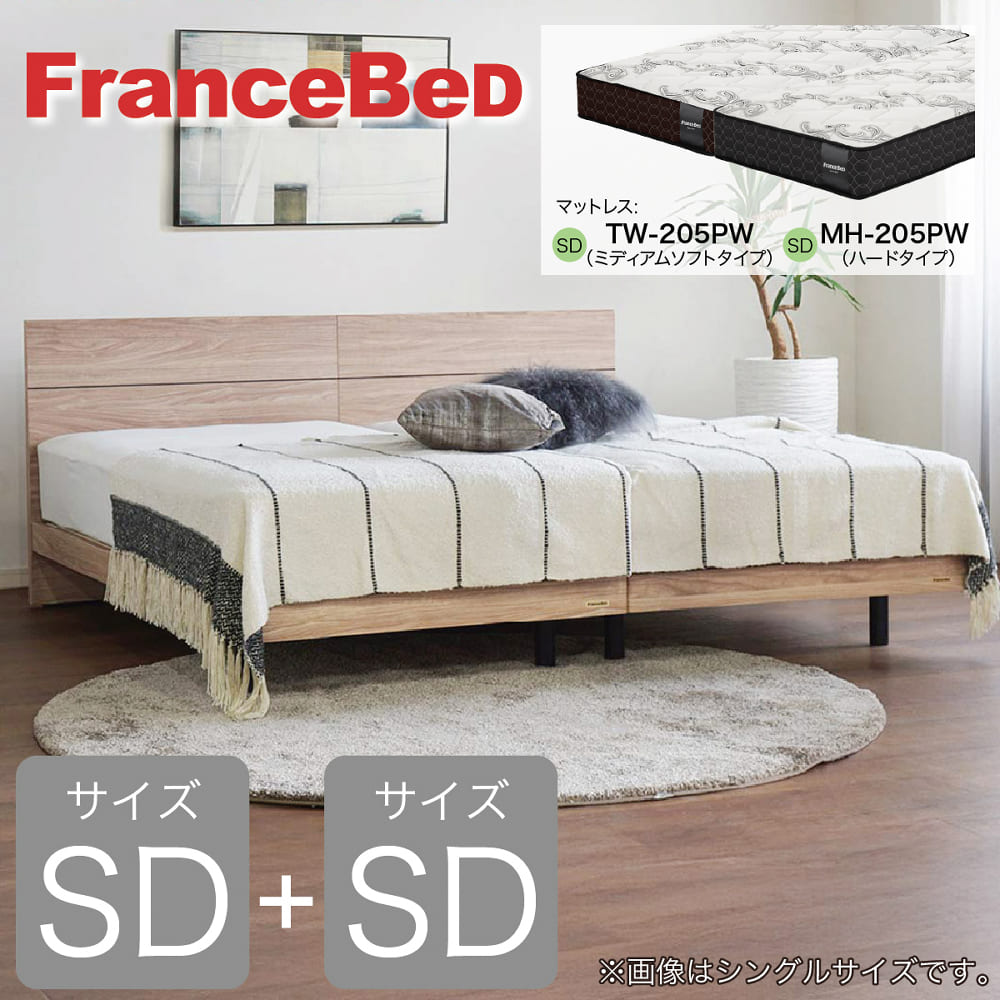 [フランスベッド] セミダブルツインベッド エコモア01F 脚付 TW205/MH205 ライトウォールナット