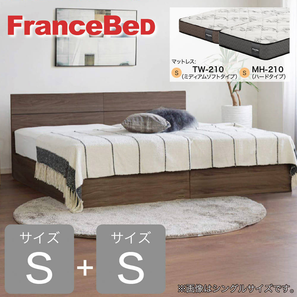 [フランスベッド] シングルツインベッド エコモア01F引出付 TW210/MH210 ウォールナット