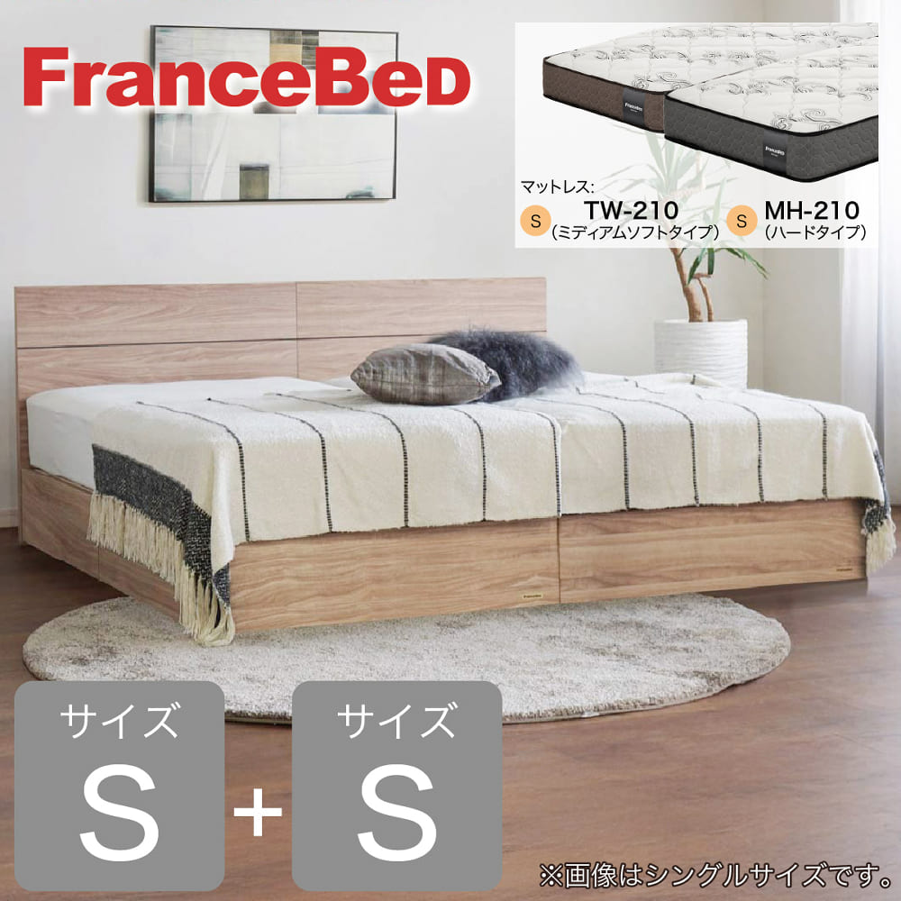 [フランスベッド] シングルツインベッド エコモア01F引出付 TW210/MH210 ライトウォールナット