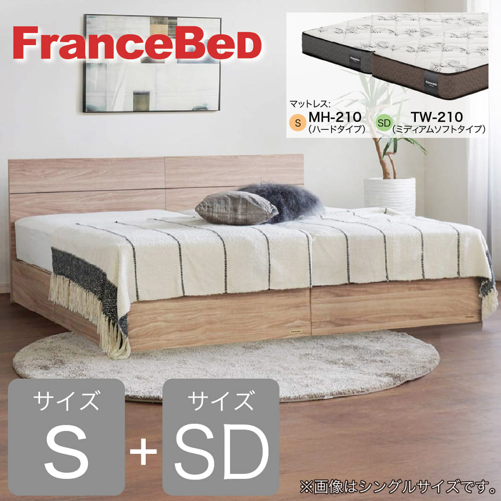 [フランスベッド] シングルセミダブルツインベッド エコモア01F引出付 MH210/TW210 ライトウォールナット
