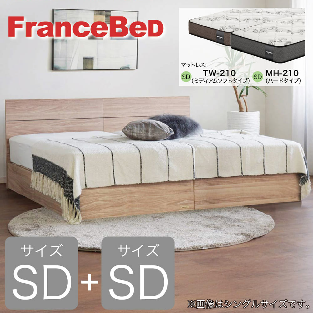 [フランスベッド] セミダブルツインベッド エコモア01F引出付 TW210/MH210 ライトウォールナット