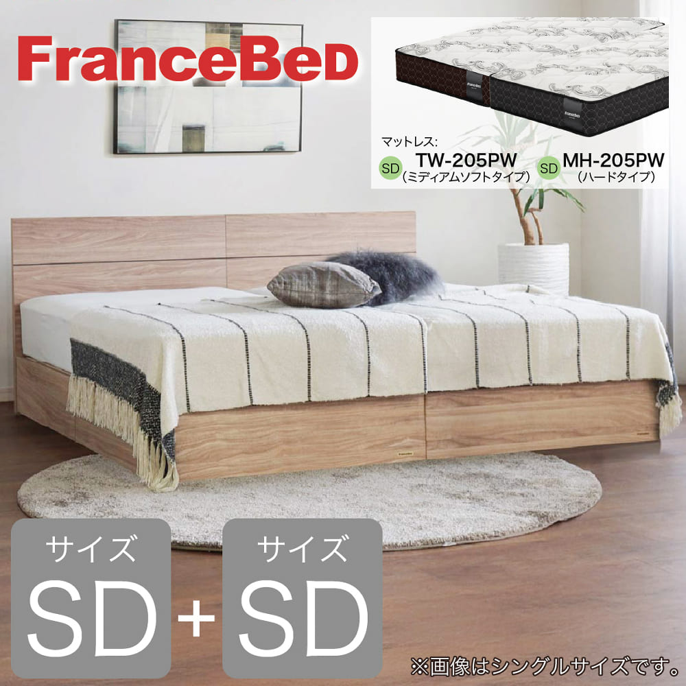 [フランスベッド] セミダブルツインベッド エコモア01F引出付 TW205/MH205 ライトウォールナット
