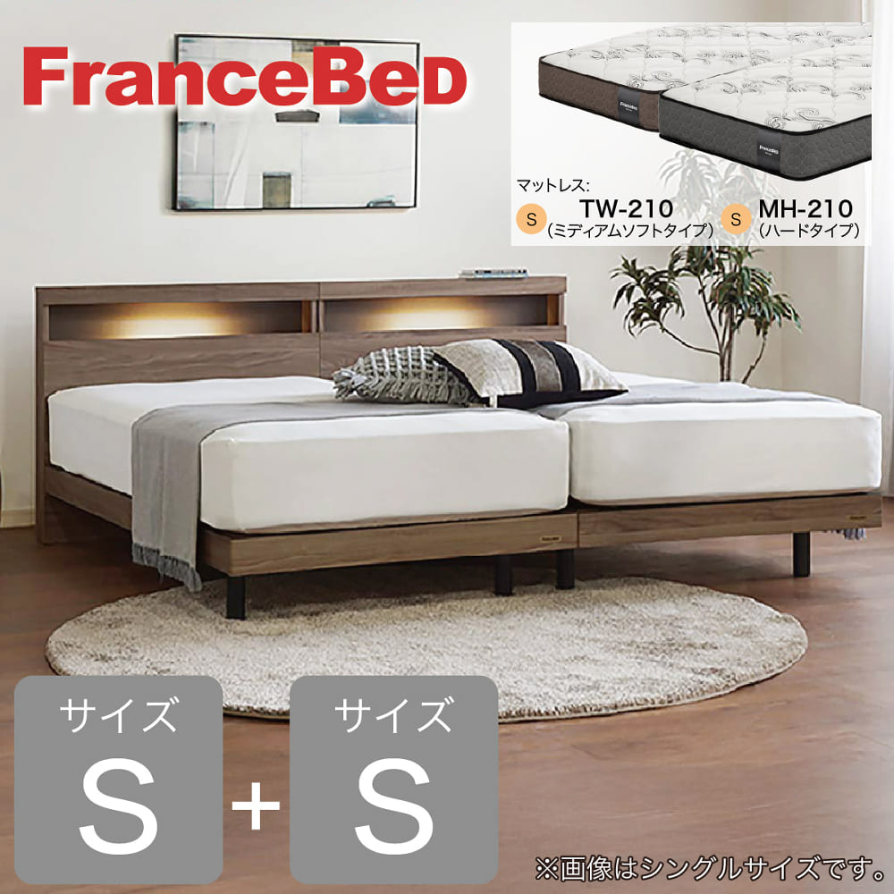 [フランスベッド] シングルツインベッド エコモア02C 脚付 TW210/MH210 ウォールナット