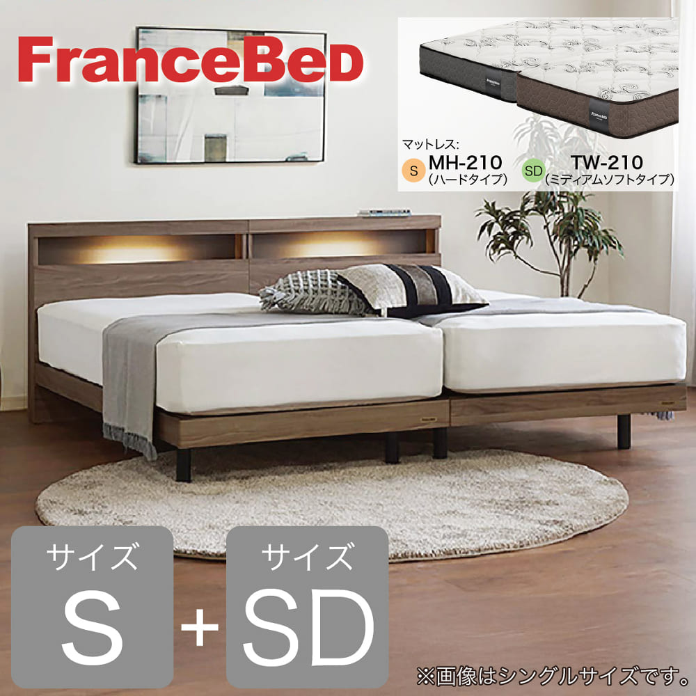 [フランスベッド] シングルセミダブルツインベッド エコモア02C 脚付 MH210/TW210 ウォールナット