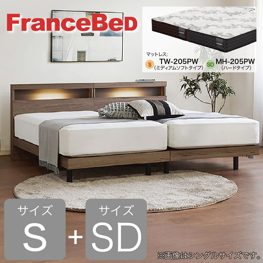 [フランスベッド] シングルセミダブルツインベッド エコモア02C 脚付 TW205/MH205 ウォールナット