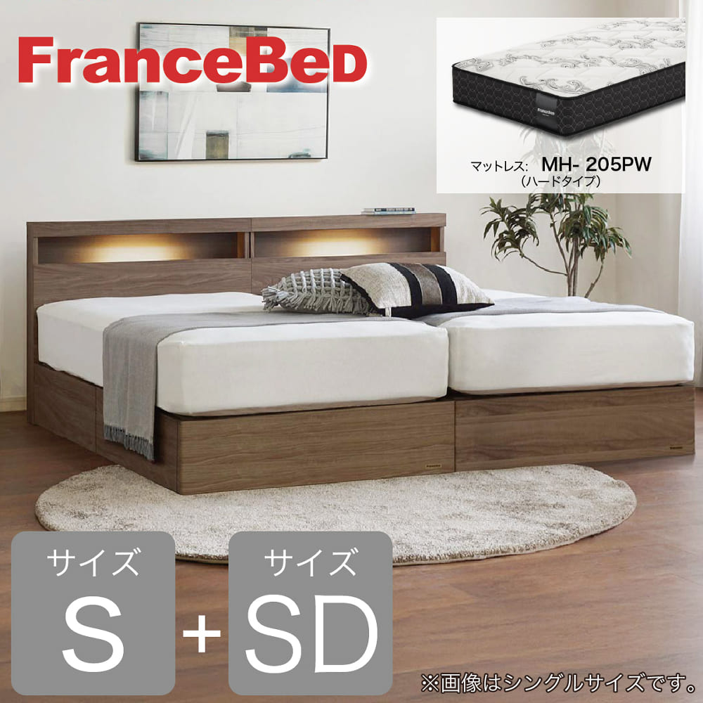 [フランスベッド] シングルセミダブルツインベッド エコモア02C 引出付 MH−205PW ウォールナット