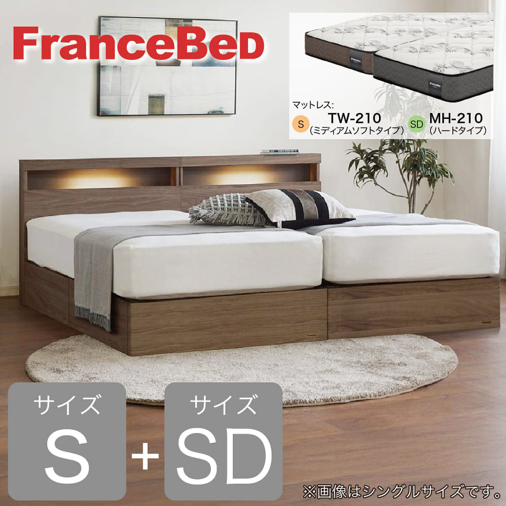 [フランスベッド] シングルセミダブルツインベッド エコモア02C引出付 TW210/MH210 ウォールナット