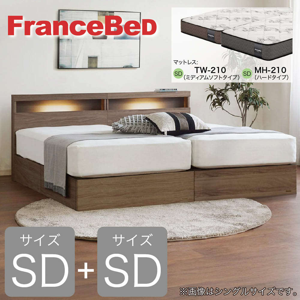 [フランスベッド] セミダブルツインベッド エコモア02C引出付 TW210/MH210 ウォールナット