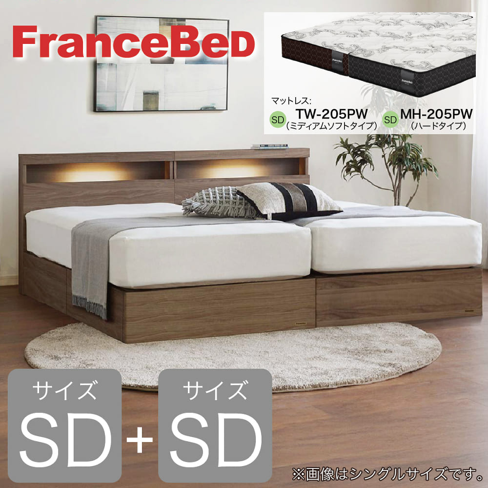 [フランスベッド] セミダブルツインベッド エコモア02C 引出付TW205/MH205 ウォールナット