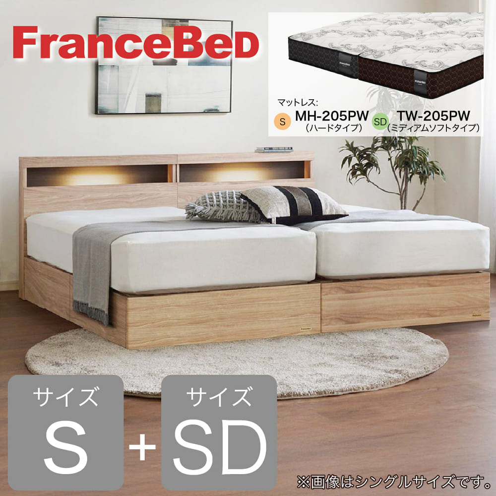 [フランスベッド] シングルセミダブルツインベッド エコモア02C引出付 MH205/TW205 ライトウォールナット
