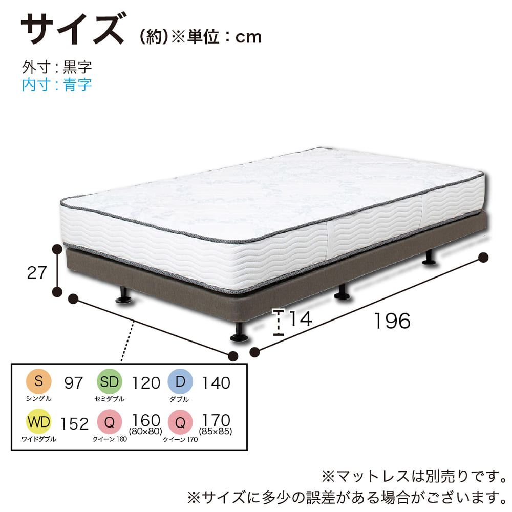 サイズ: | 幅160cm ×奥行196cm ×高さ27cm |