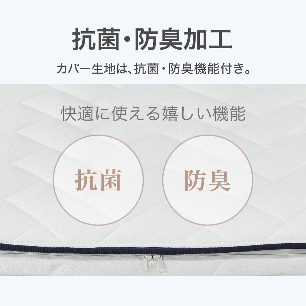 ◆また、「寝返りしやすい」「ムレにくい」「水洗いできる」といった特長も兼ね備えており、衛生的で心地よい睡眠をサポートします。