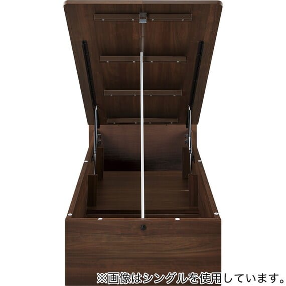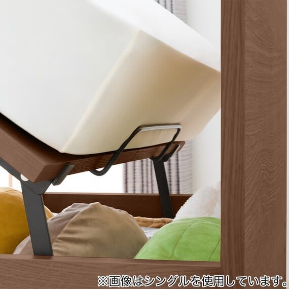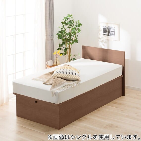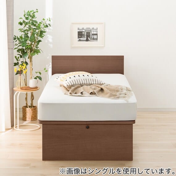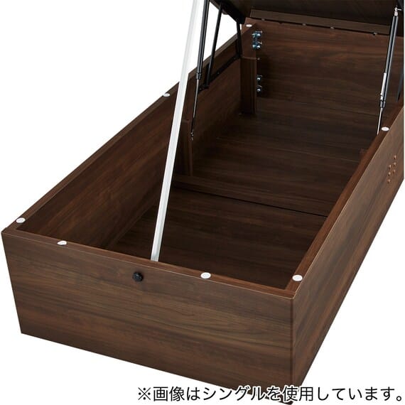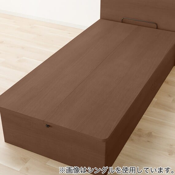 【N-ジオ】シリーズは、横開きと縦開きのタイプがあり、引出しに入らない大きなサイズの物も収納できるうえ、中身を一度に見渡せる大容量収納が魅力です。さらに、ヘッドボードを選べるため、お部屋の雰囲気やライフスタイルに合わせて自分好みのデザインを選びたい方におすすめです。シリンダーで跳ね上げをサポート。マットレスを載せたままラクラク開閉が可能です。