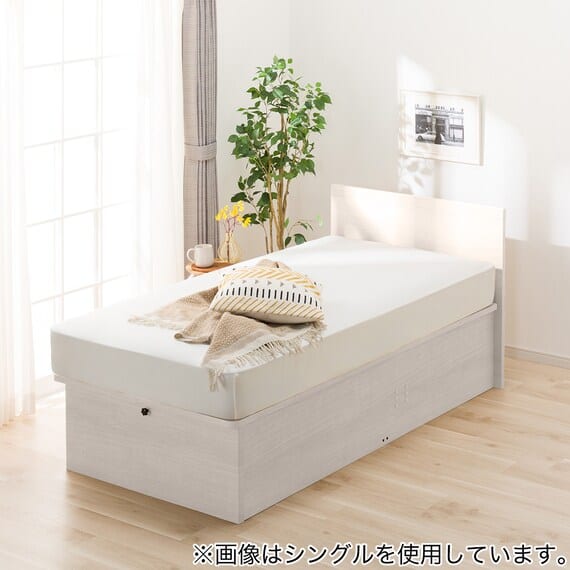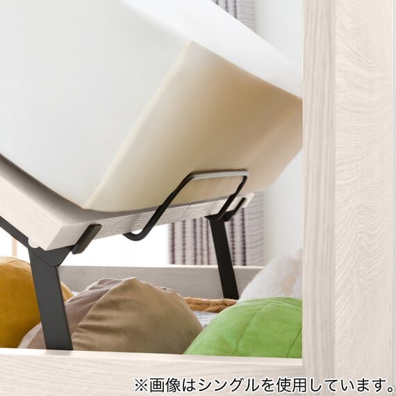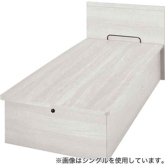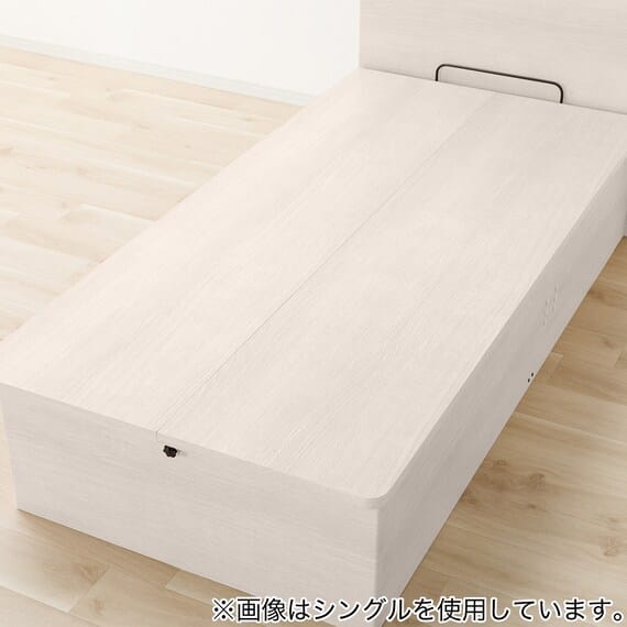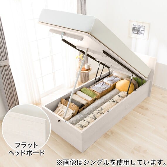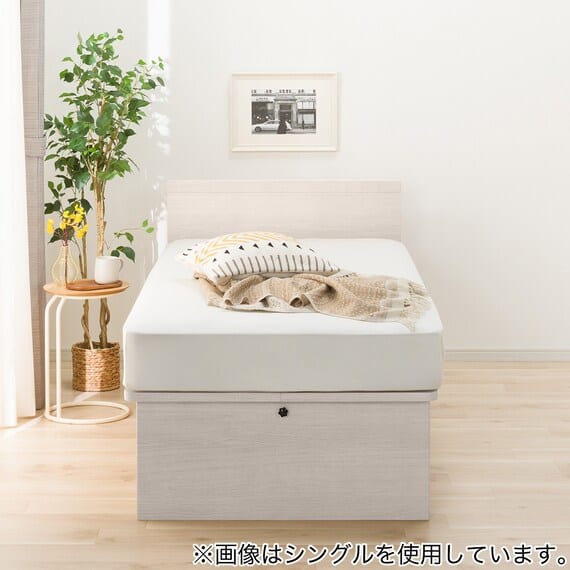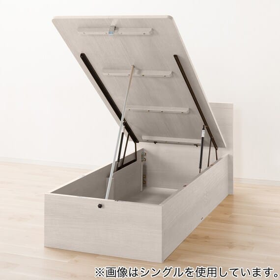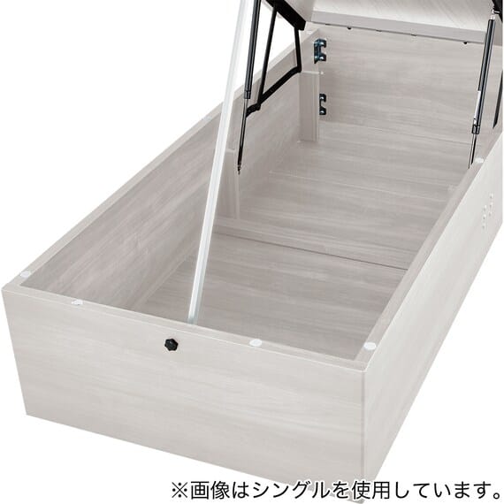 【N-ジオ】シリーズは、横開きと縦開きのタイプがあり、引出しに入らない大きなサイズの物も収納できるうえ、中身を一度に見渡せる大容量収納が魅力です。さらに、ヘッドボードを選べるため、お部屋の雰囲気やライフスタイルに合わせて自分好みのデザインを選びたい方におすすめです。シリンダーで跳ね上げをサポート。マットレスを載せたままラクラク開閉が可能です。