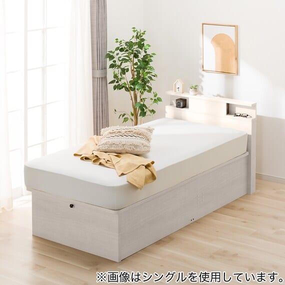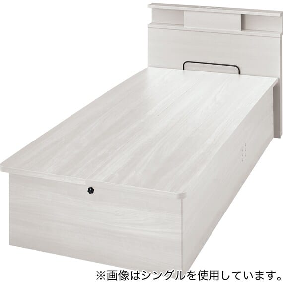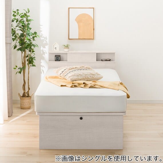 【N-ジオ】シリーズは、横開きと縦開きのタイプがあり、引出しに入らない大きなサイズの物も収納できるうえ、中身を一度に見渡せる大容量収納が魅力です。さらに、ヘッドボードを選べるため、お部屋の雰囲気やライフスタイルに合わせて自分好みのデザインを選びたい方におすすめです。シリンダーで跳ね上げをサポート。マットレスを載せたままラクラク開閉が可能です。