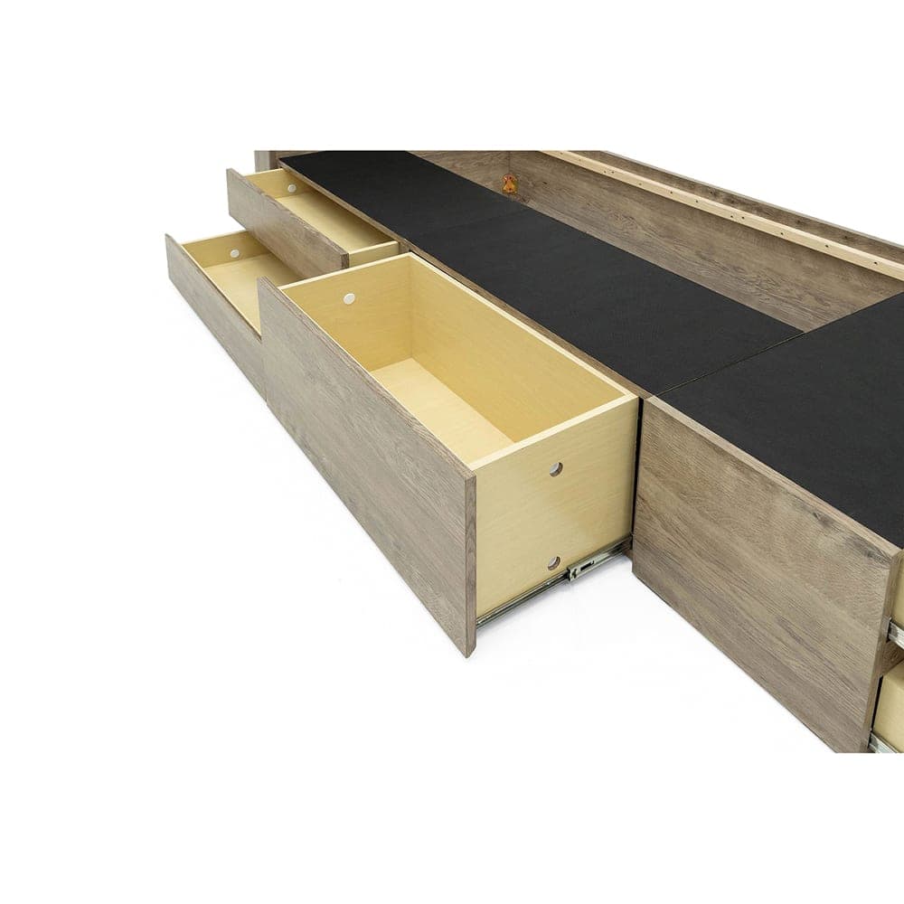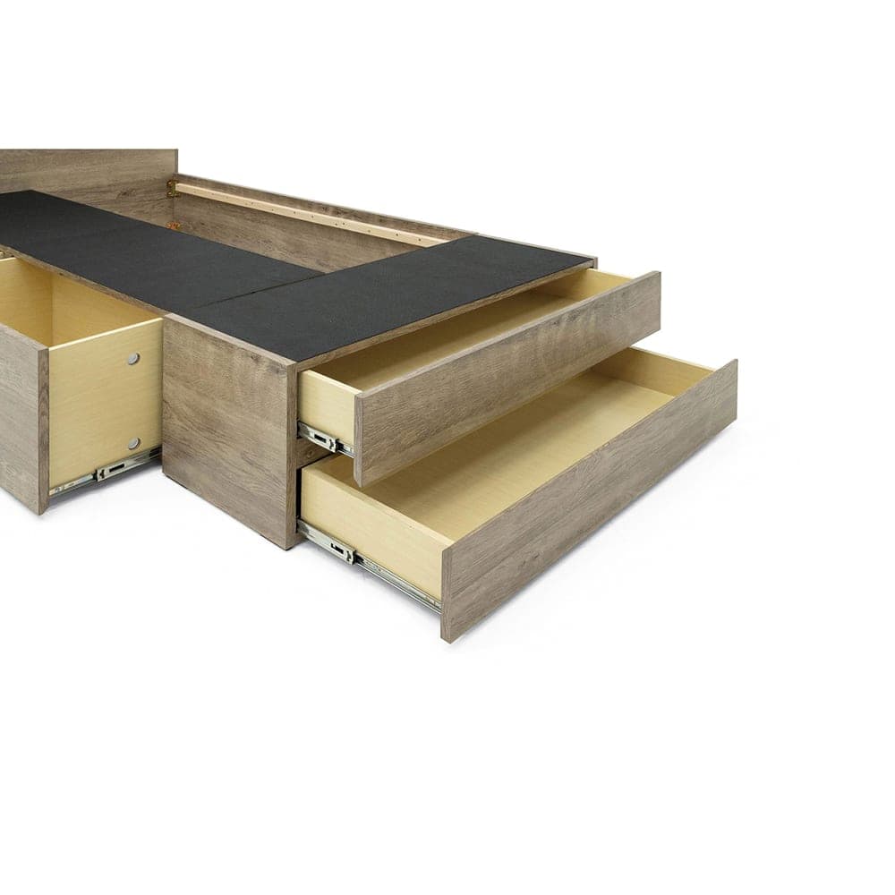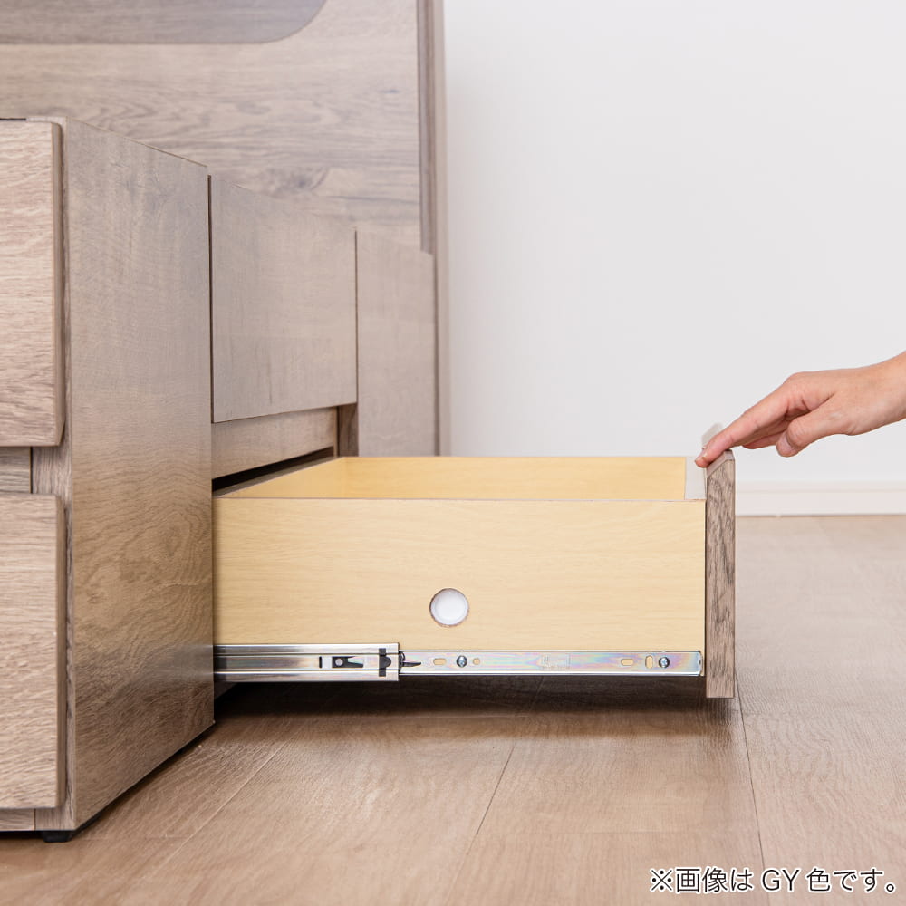 ◆やさしい木目柄がきれいなベッドフレーム◆ベッド下の引き出しは、奥まで引き出せて便利なフルオープンレール付き