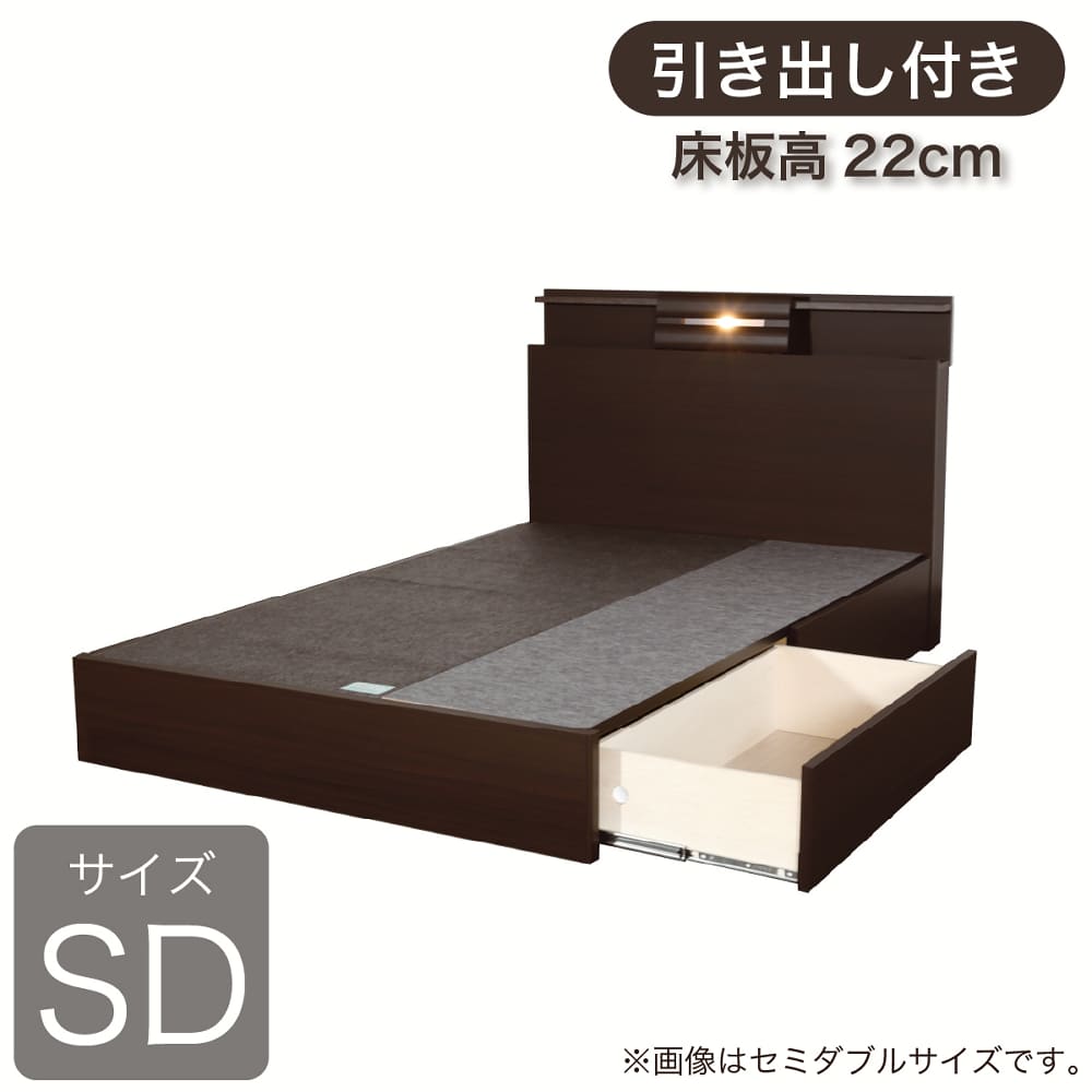 [ドリームベッド]セミダブルフレーム シマライズ1086BOXH220チャコールウォールナット引出付き(床板高22) ※マットレス別売