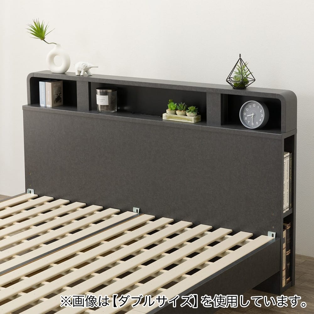 ◆ヘッドボードの左右側面には本などを収納できるスペースがあり、ベッド周りを整理しやすく便利です。