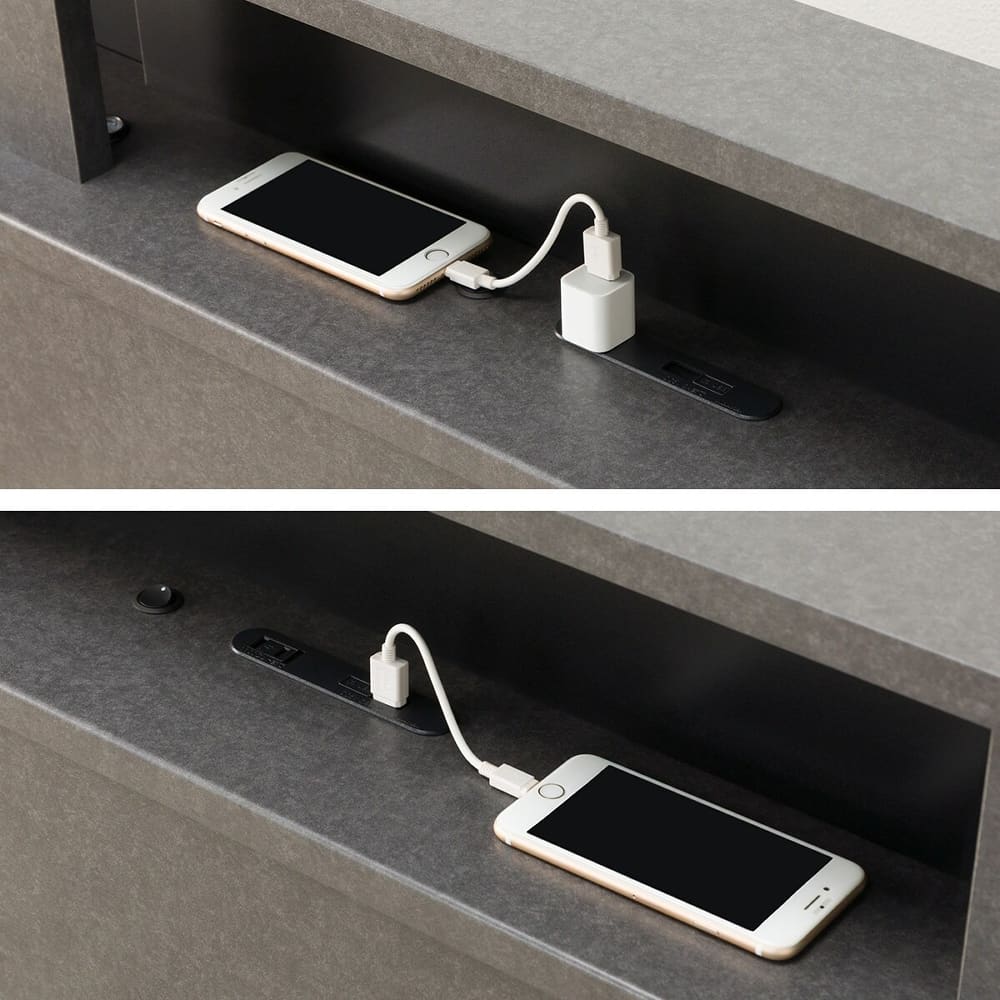 ◆USBポートと1口コンセントを備えているので、携帯電話やタブレットの充電もベッドの上で手軽に行えます。