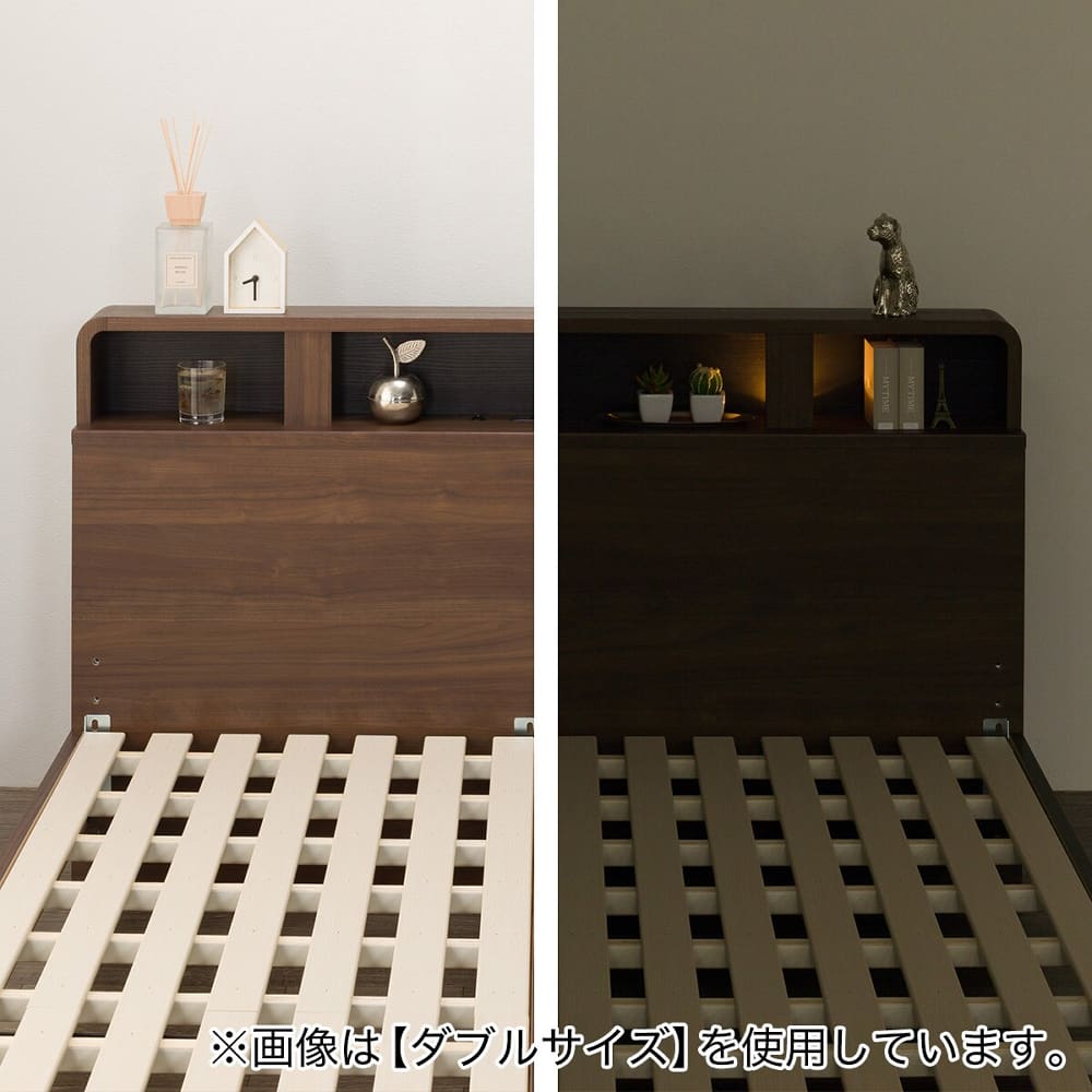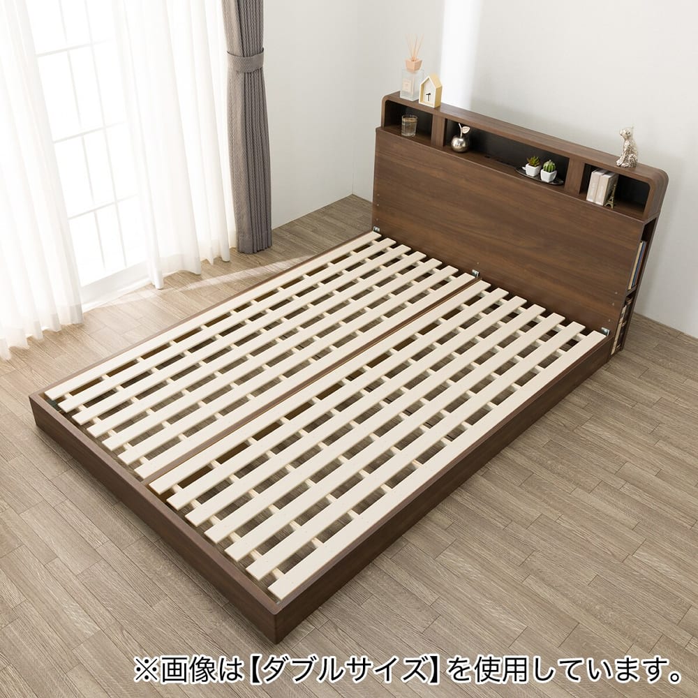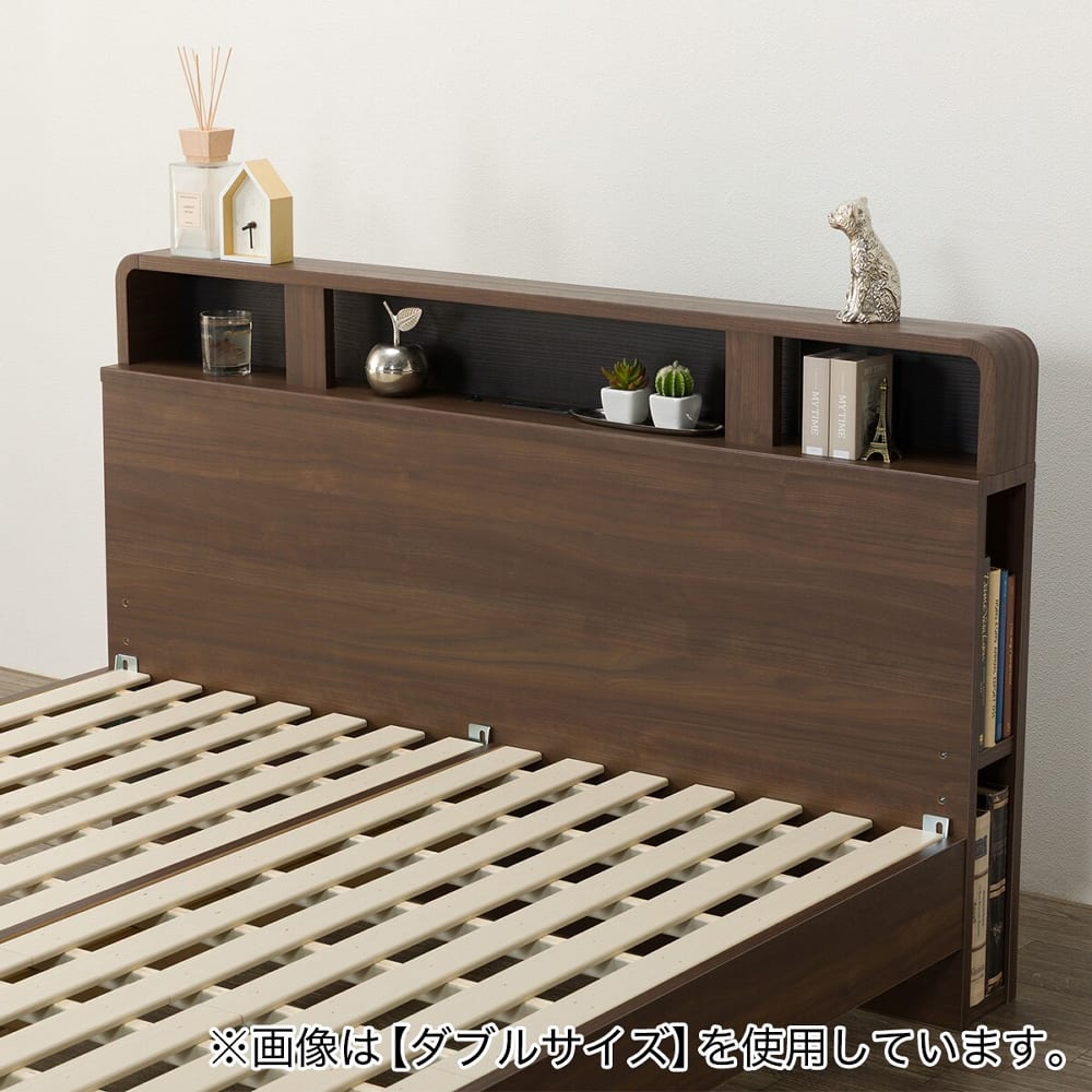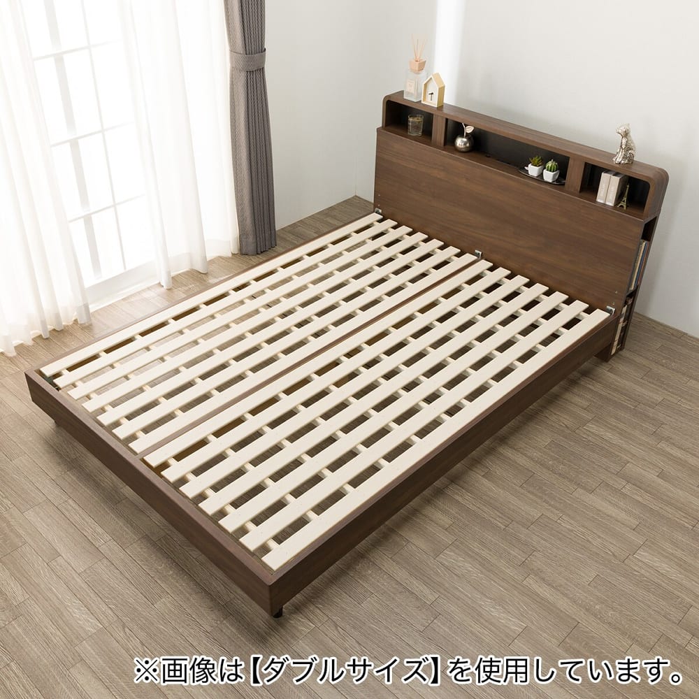 ◆コンセント・USB・仕切り棚・サイド収納・LED照明など多機能なヘッドボード付きのすのこベッド。◆ヘッドボードには仕切り棚があり、スマートフォンや時計などの小物をすっきり置くことができます。