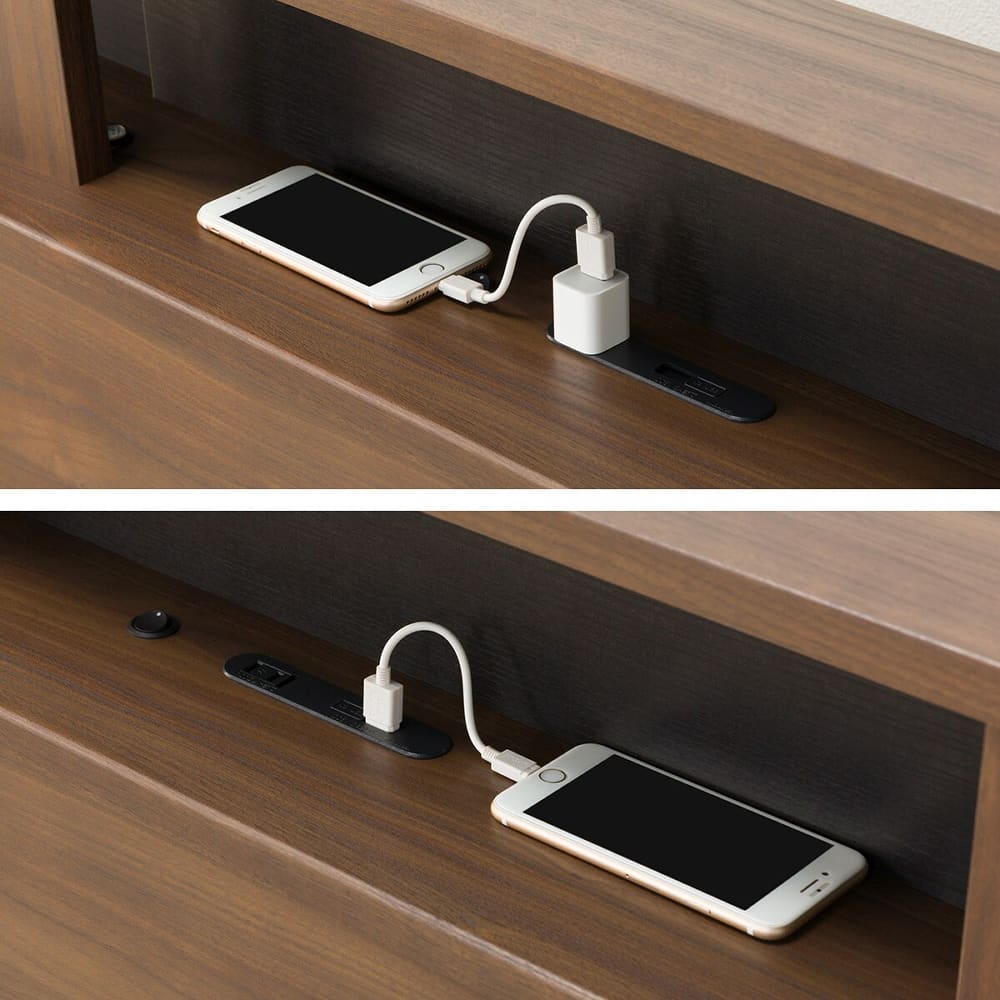 ◆USBポートと1口コンセントを備えているので、携帯電話やタブレットの充電もベッドの上で手軽に行えます。