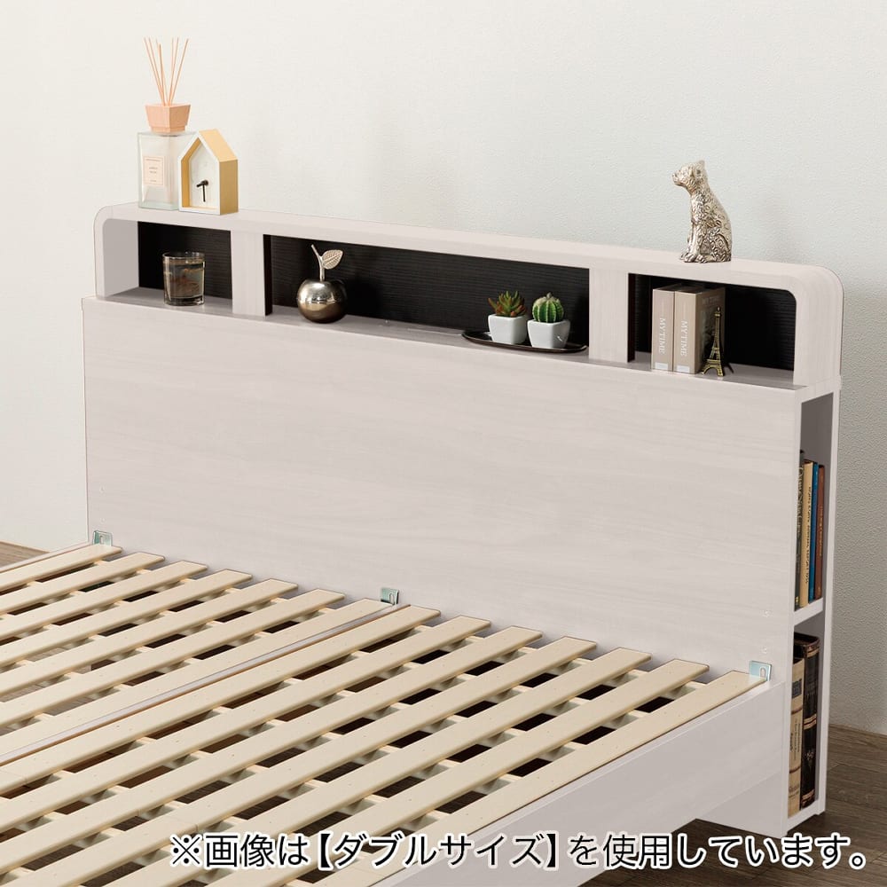 ◆ヘッドボードの左右側面には本などを収納できるスペースがあり、ベッド周りを整理しやすく便利です。