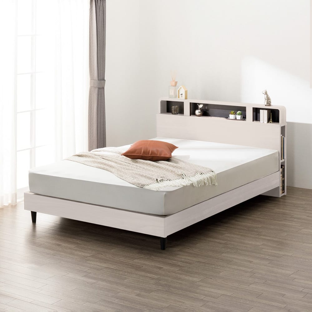 ◆ヘッドボードの左右側面には本などを収納できるスペースがあり、ベッド周りを整理しやすく便利です。