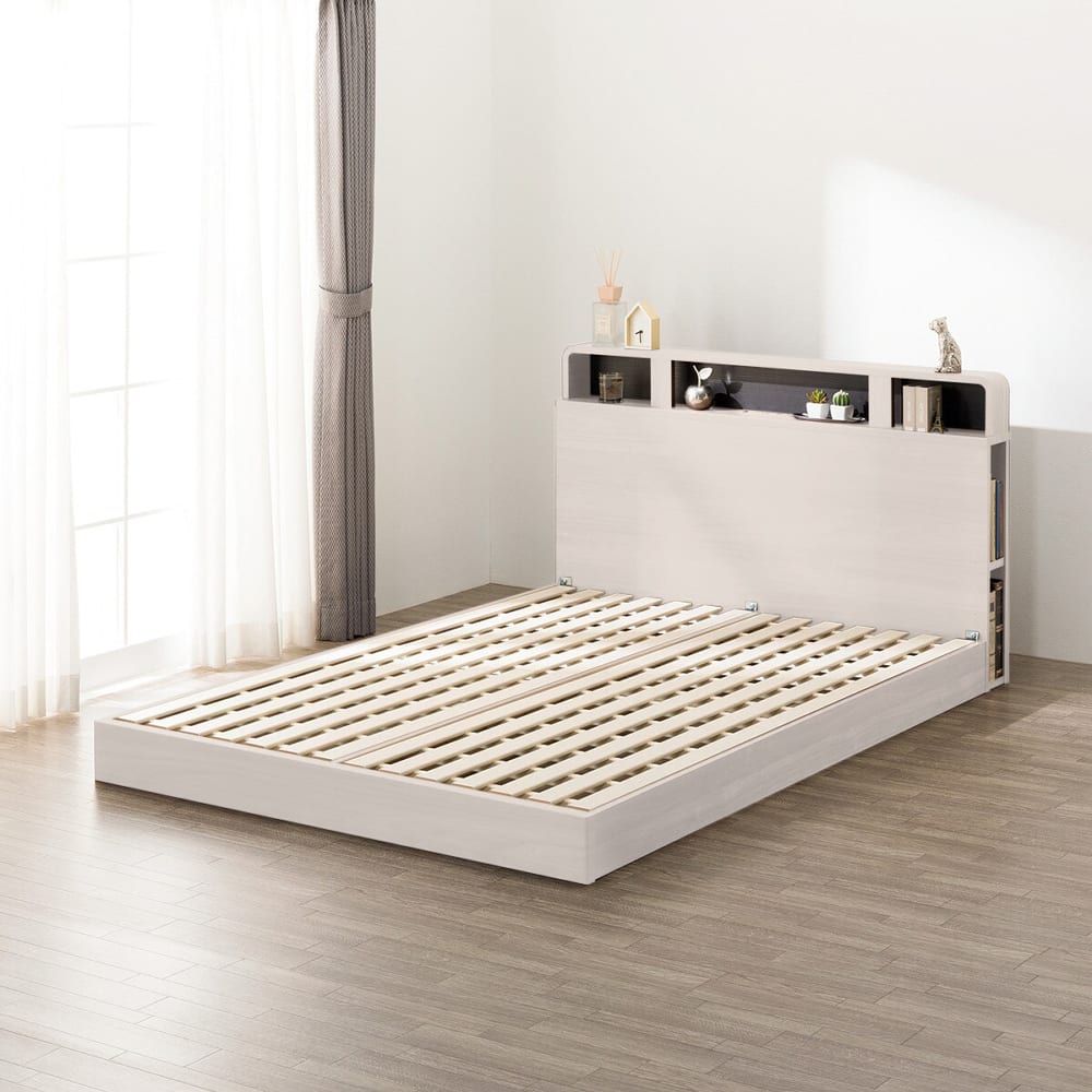 ◆コンセント・USB・仕切り棚・サイド収納・LED照明など多機能なヘッドボード付きのすのこベッド。◆ヘッドボードには仕切り棚があり、スマートフォンや時計などの小物をすっきり置くことができます。