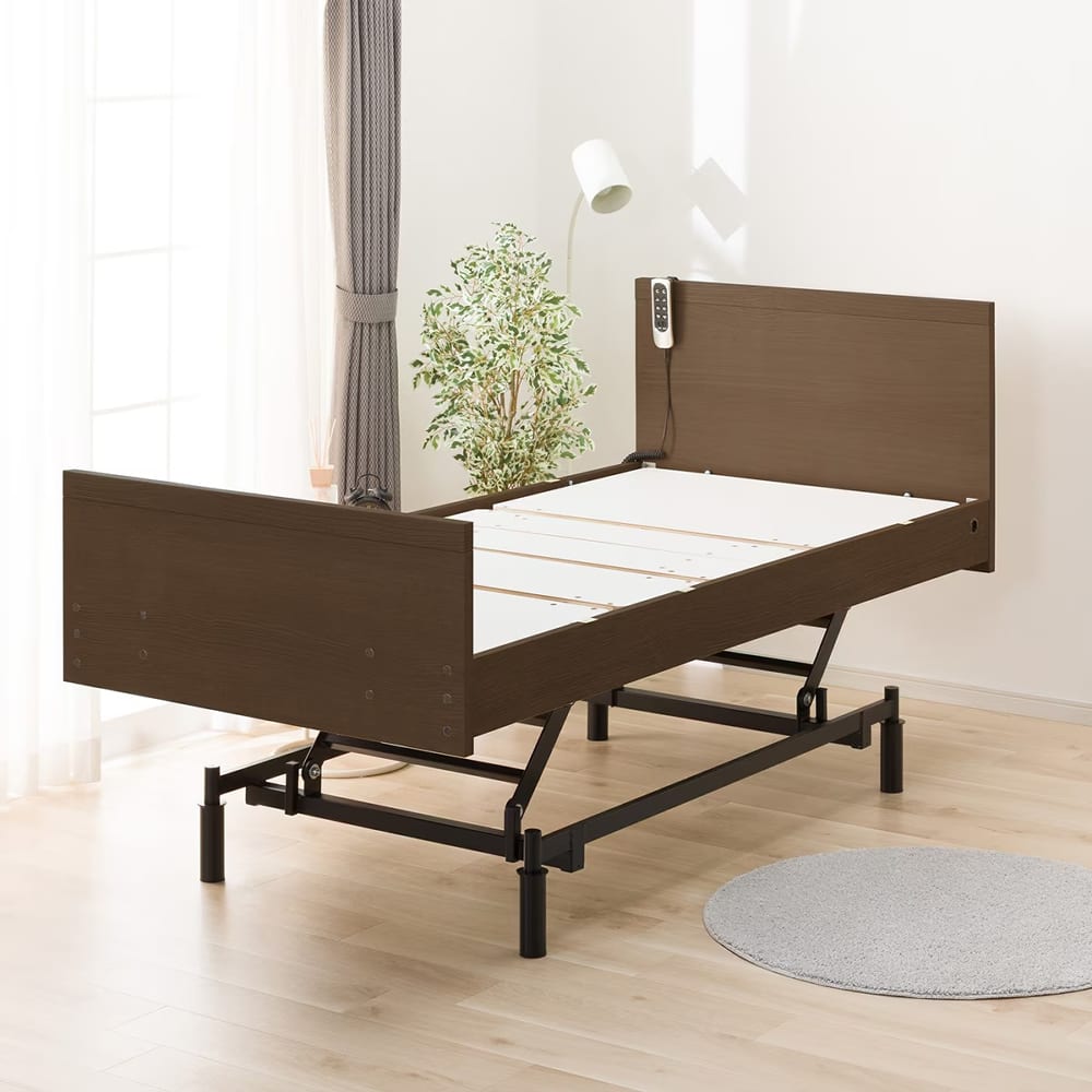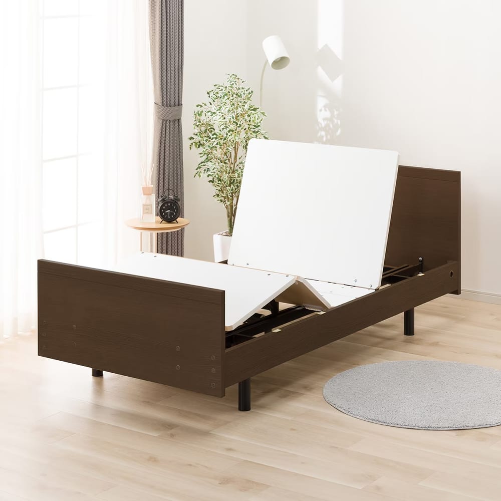 【3モーターの電動ベッド】ベッドの高さ・背部・足元をそれぞれ独立して動かして無段階調整できる3モーター仕様です。ベッドの乗り降りが楽になり、介護する側も楽な姿勢で対応できます。