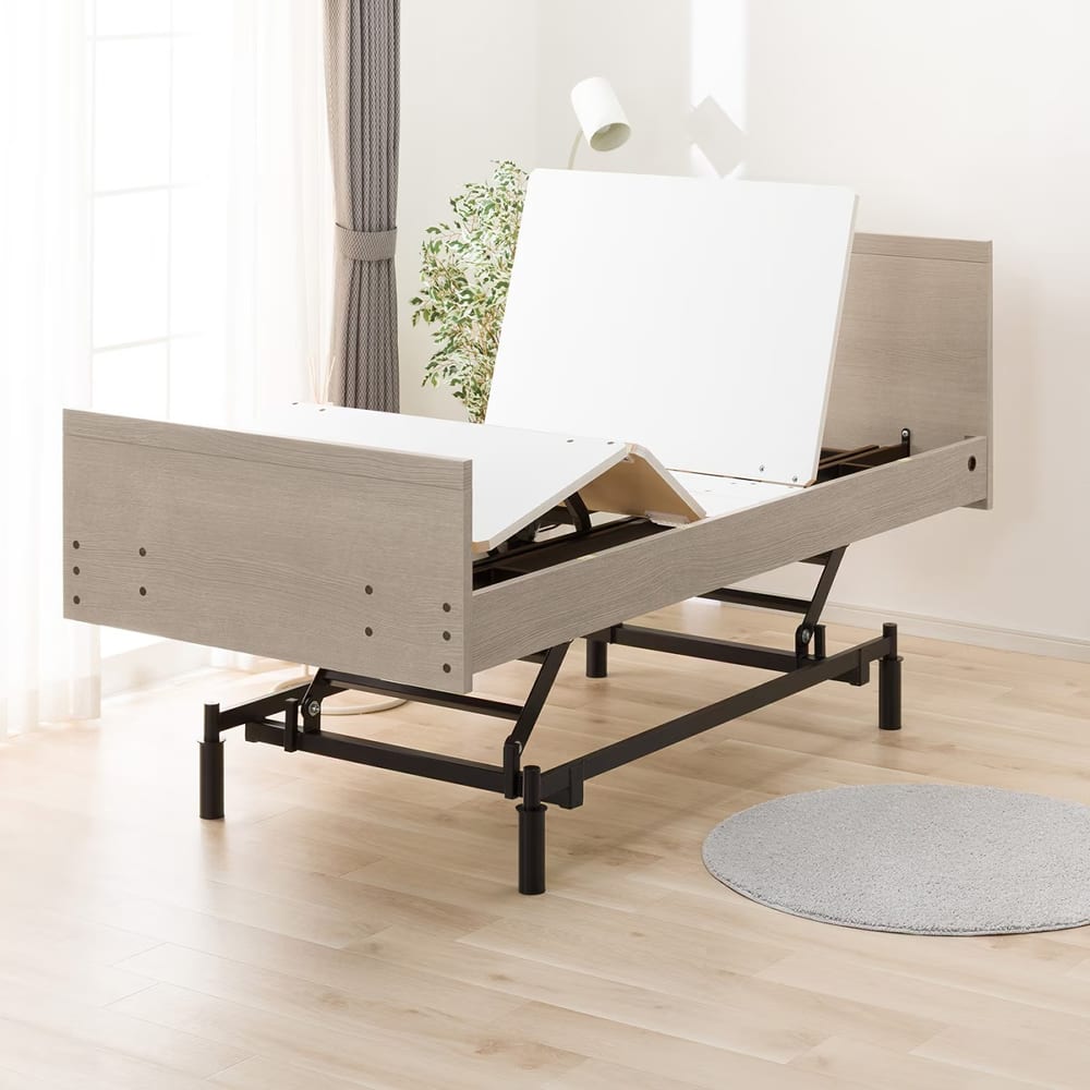 【3モーターの電動ベッド】ベッドの高さ・背部・足元をそれぞれ独立して動かして無段階調整できる3モーター仕様です。ベッドの乗り降りが楽になり、介護する側も楽な姿勢で対応できます。