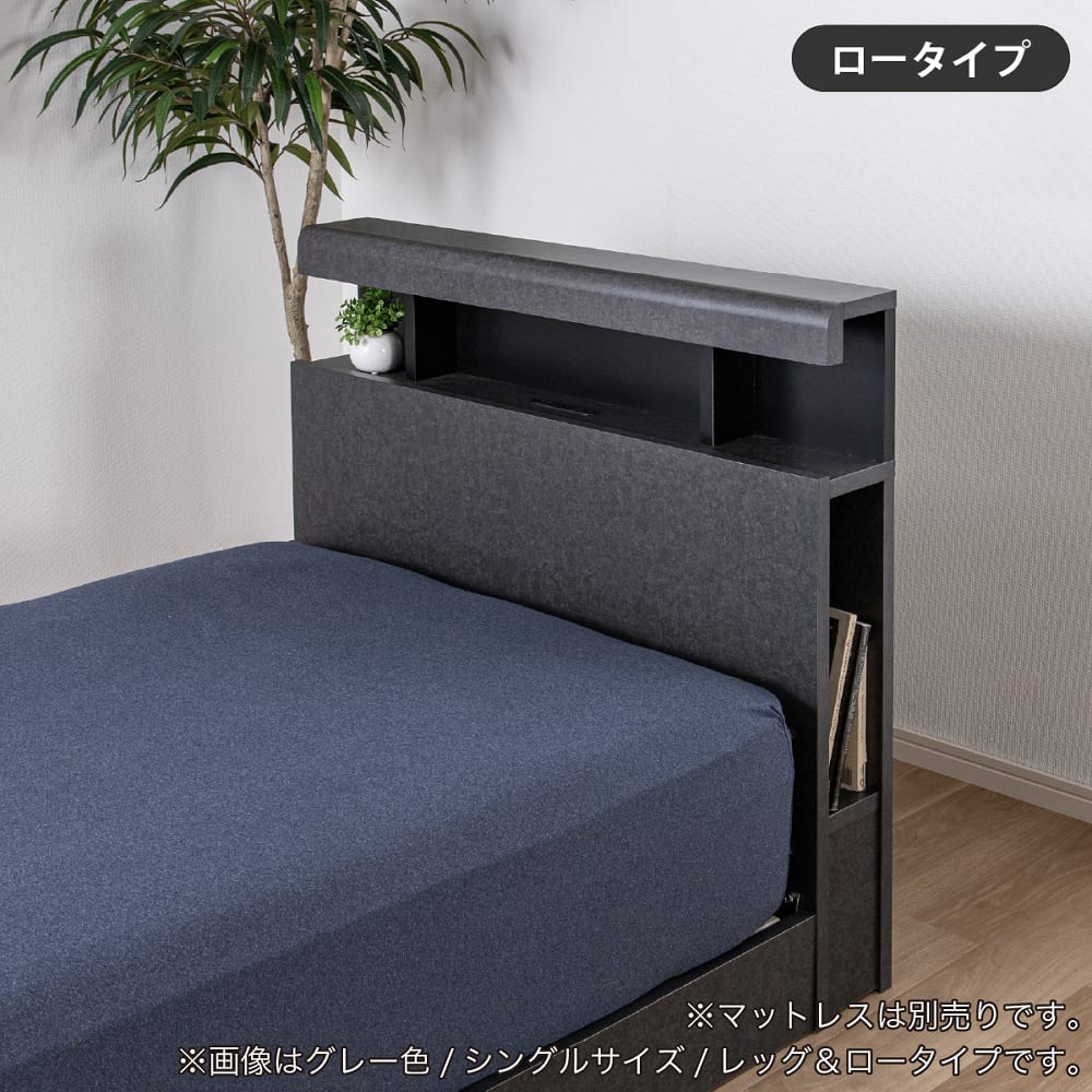 ◆上品なヘッドボードデザインが特徴。◆ヘッドボードの両脇には、本やタブレットを収納できるスペースが完備。