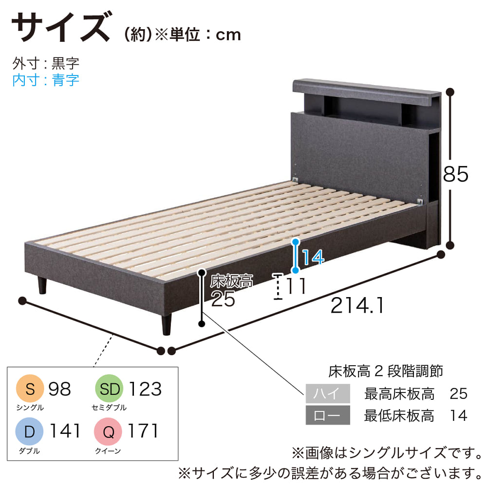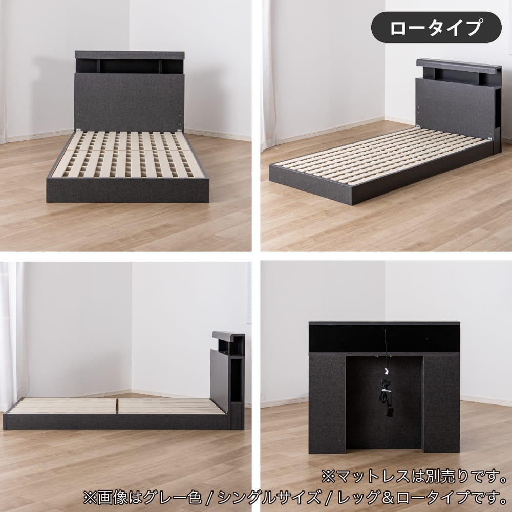 ◆上品なヘッドボードデザインが特徴。◆ヘッドボードの両脇には、本やタブレットを収納できるスペースが完備。