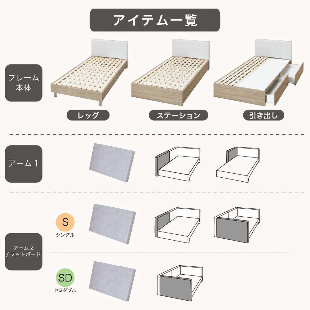 ◆生活スタイルに合わせて自由にカスタマイズできるベッドフレームシリーズ【FB-S】◆ヘッドボードにはスマホの充電に便利なUSB・コンセントポート付き。