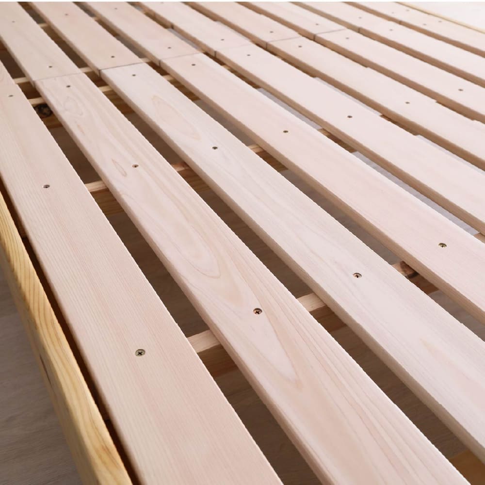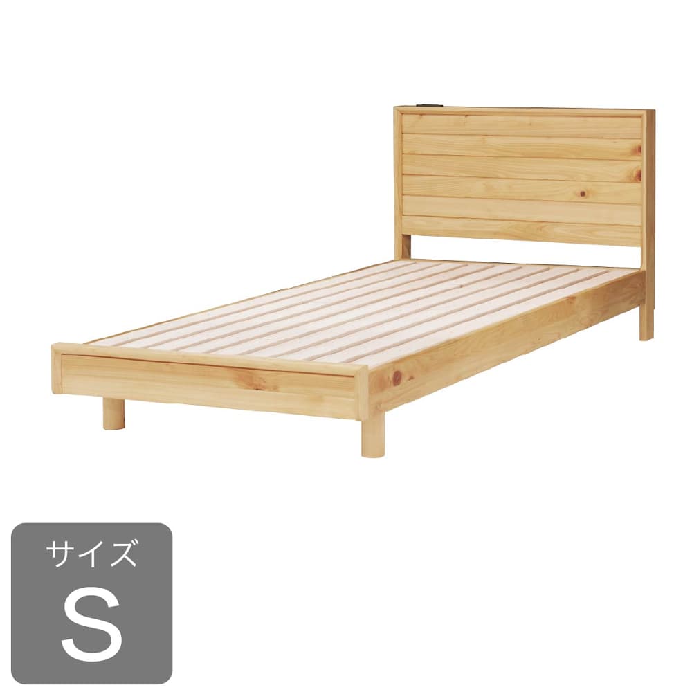 ◆檜無垢材を使用したシンプルなベッドフレームです。檜の香りがリラックス効果をもたらしてくれます。◆ヘッドボードはスマホの充電に便利な2口コンセント付き。壁にピッタリ巾木除け仕様です。
