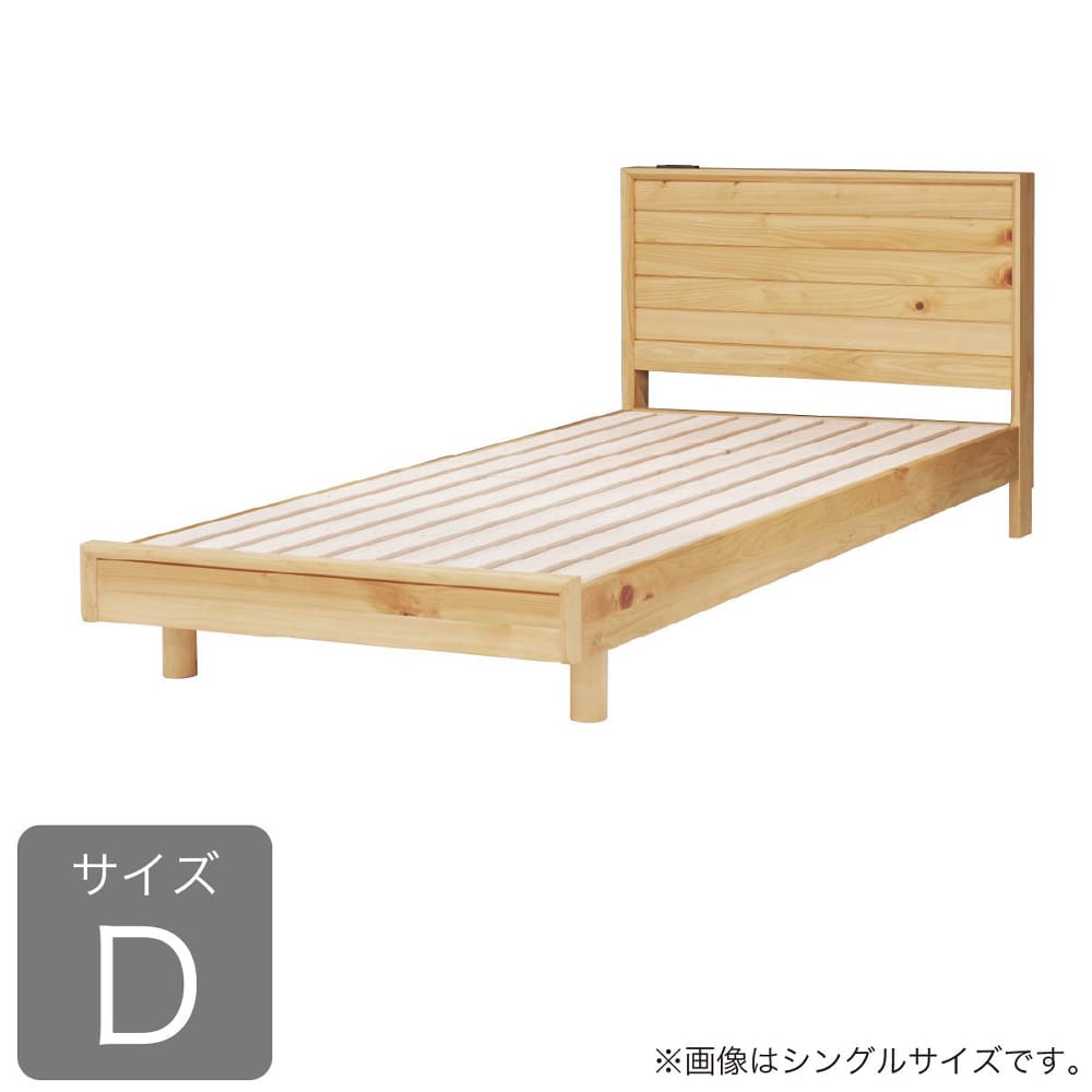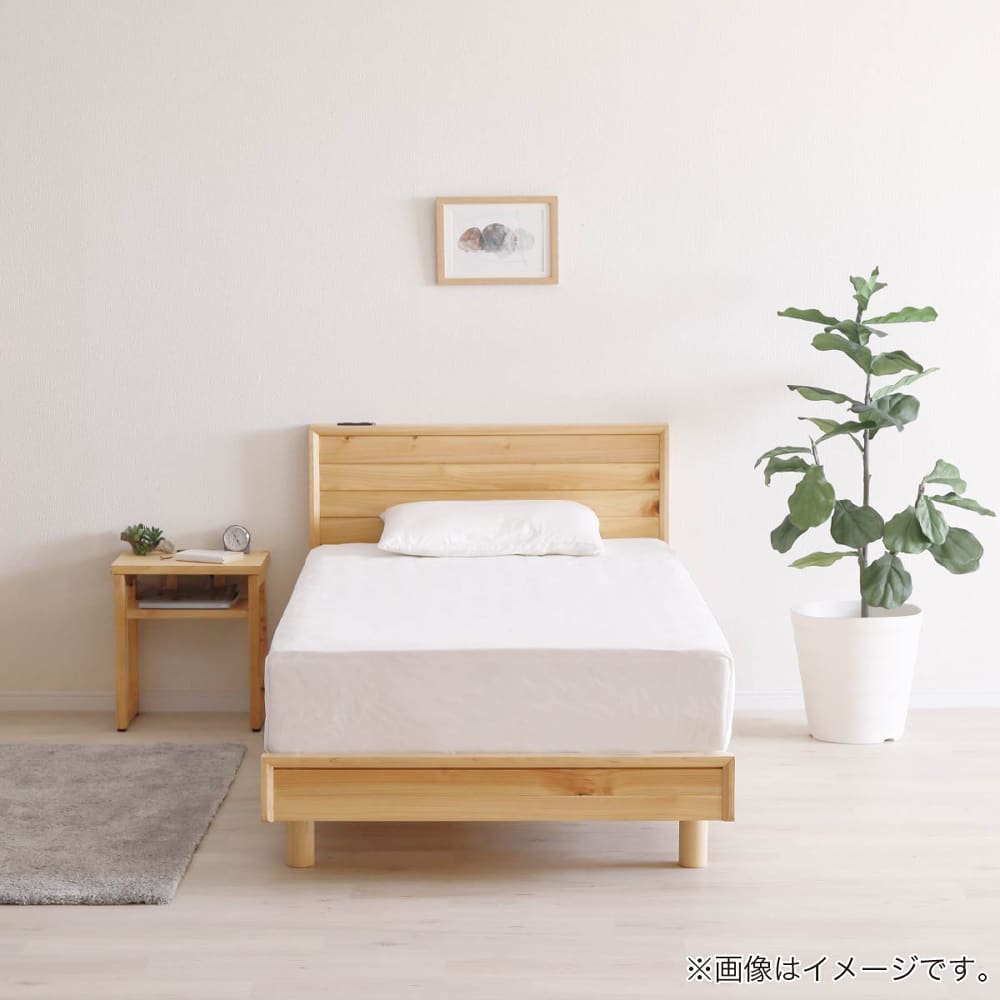 ◆檜無垢材を使用したシンプルなベッドフレームです。檜の香りがリラックス効果をもたらしてくれます。◆ヘッドボードはスマホの充電に便利な2口コンセント付き。壁にピッタリ巾木除け仕様です。