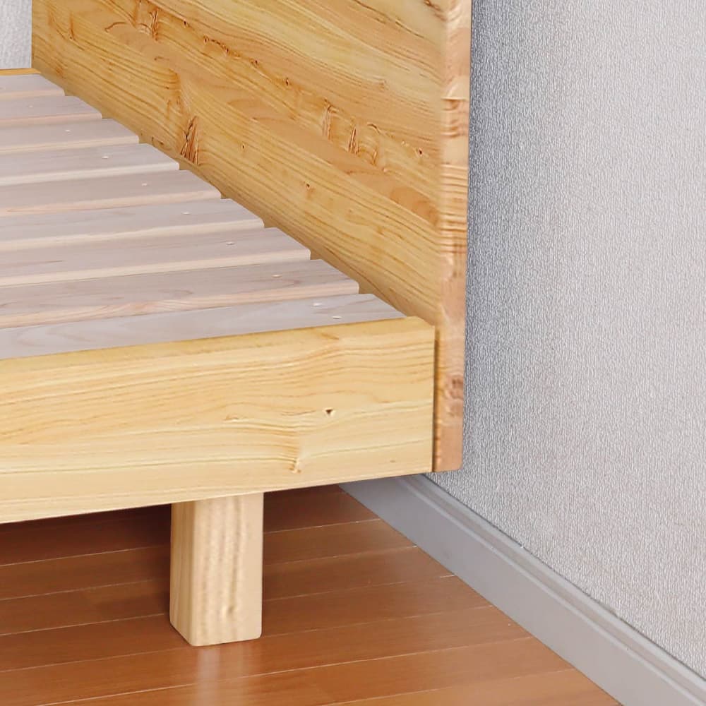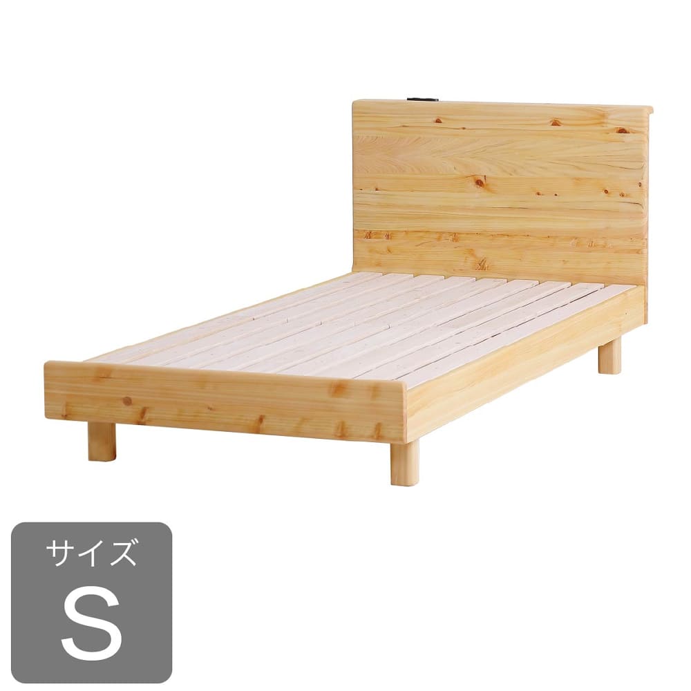 ◆檜無垢材を使用したシンプルなベッドフレームです。檜の香りがリラックス効果をもたらしてくれます。◆ヘッドボードはスマホの充電に便利な2口コンセント付き。壁にピッタリ巾木除け仕様です。
