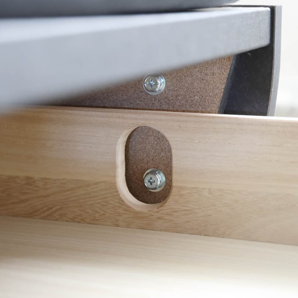 ◆引き出し前板は斜めに角度がついており踵が当たらないようになっております。