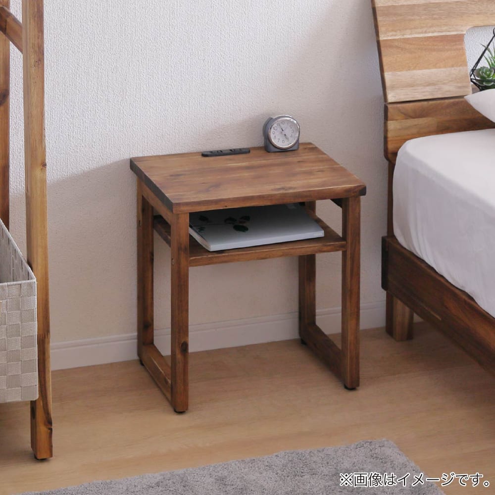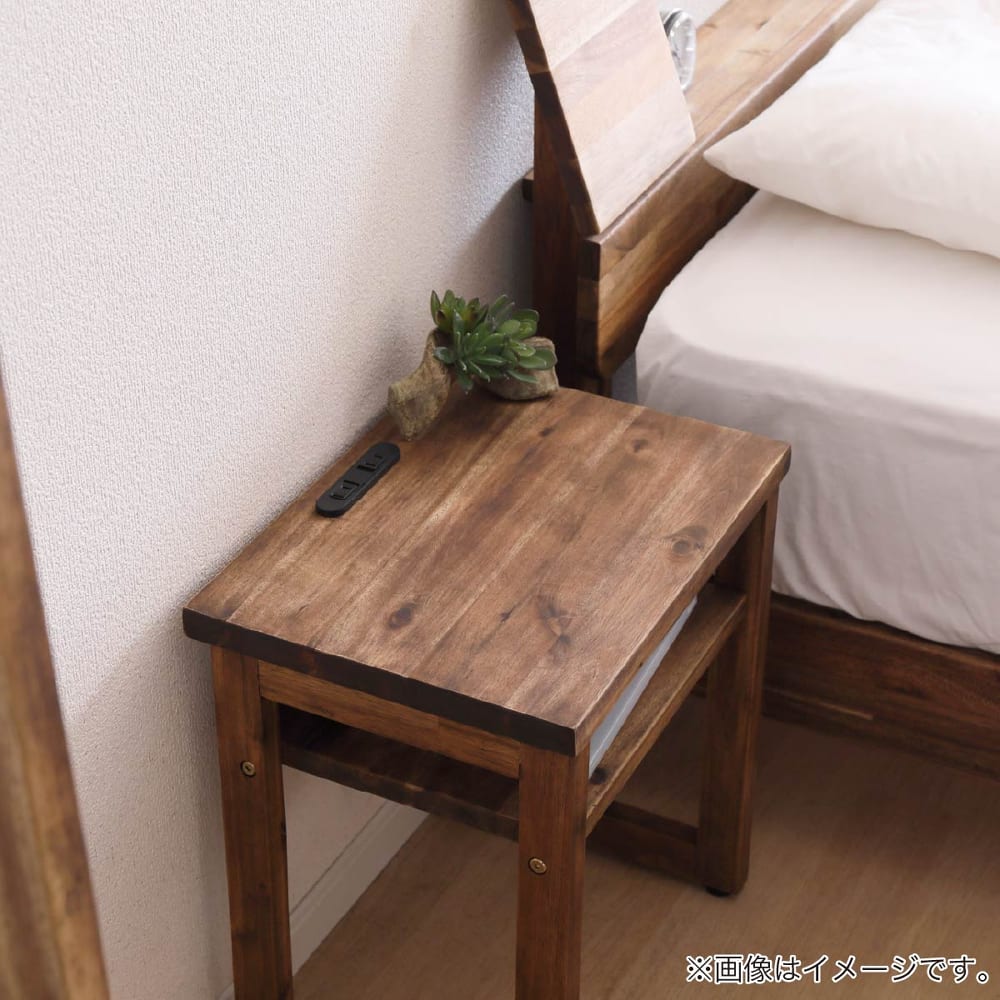 ◆アカシア無垢材を使用したシンプルなナイトテーブルです。◆携帯の充電などに便利な2口コンセント付。