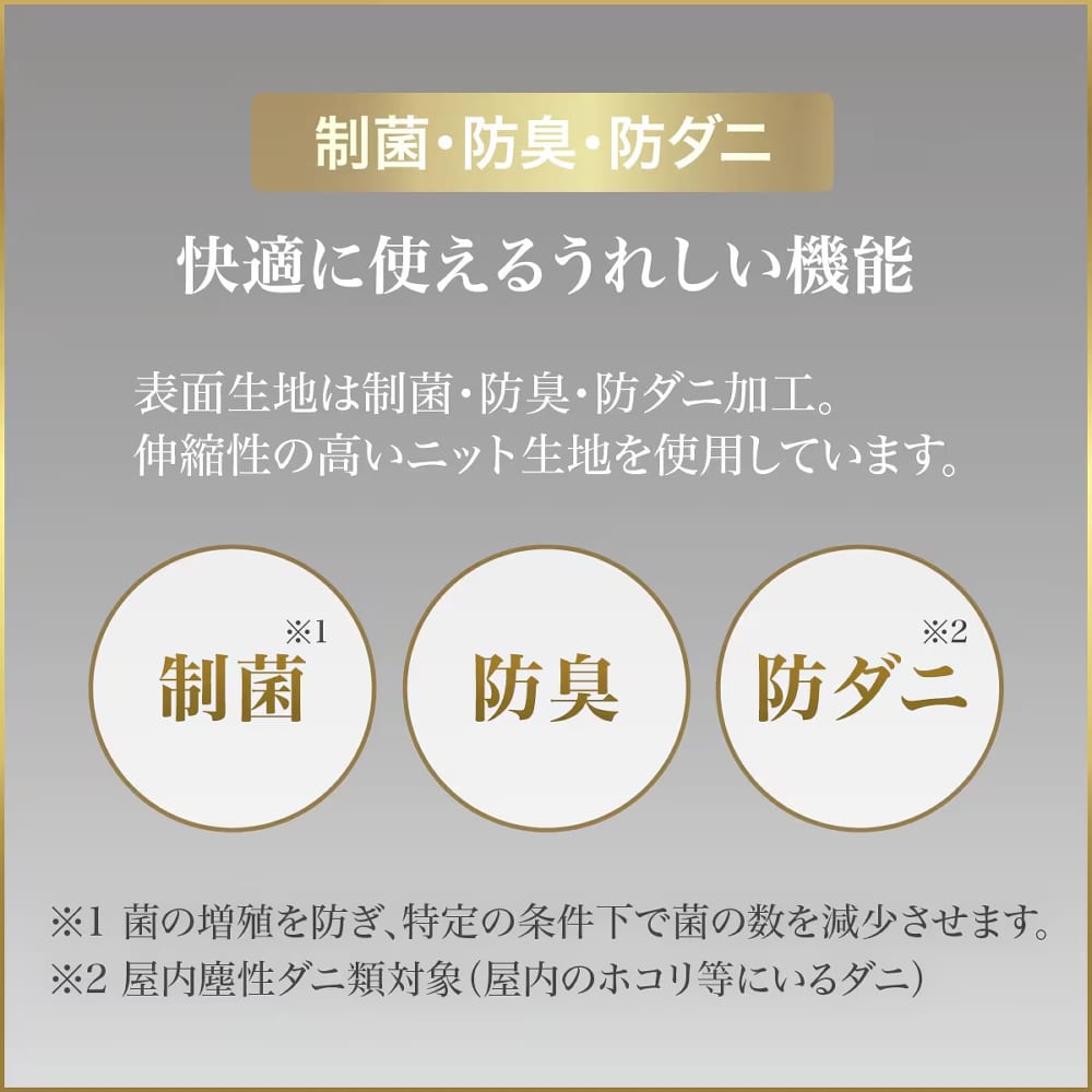 ◆表面には伸縮性の高いニット生地を使用し、制菌・防臭・防ダニ加工が施されているため、清潔で安心してご利用いただけます。