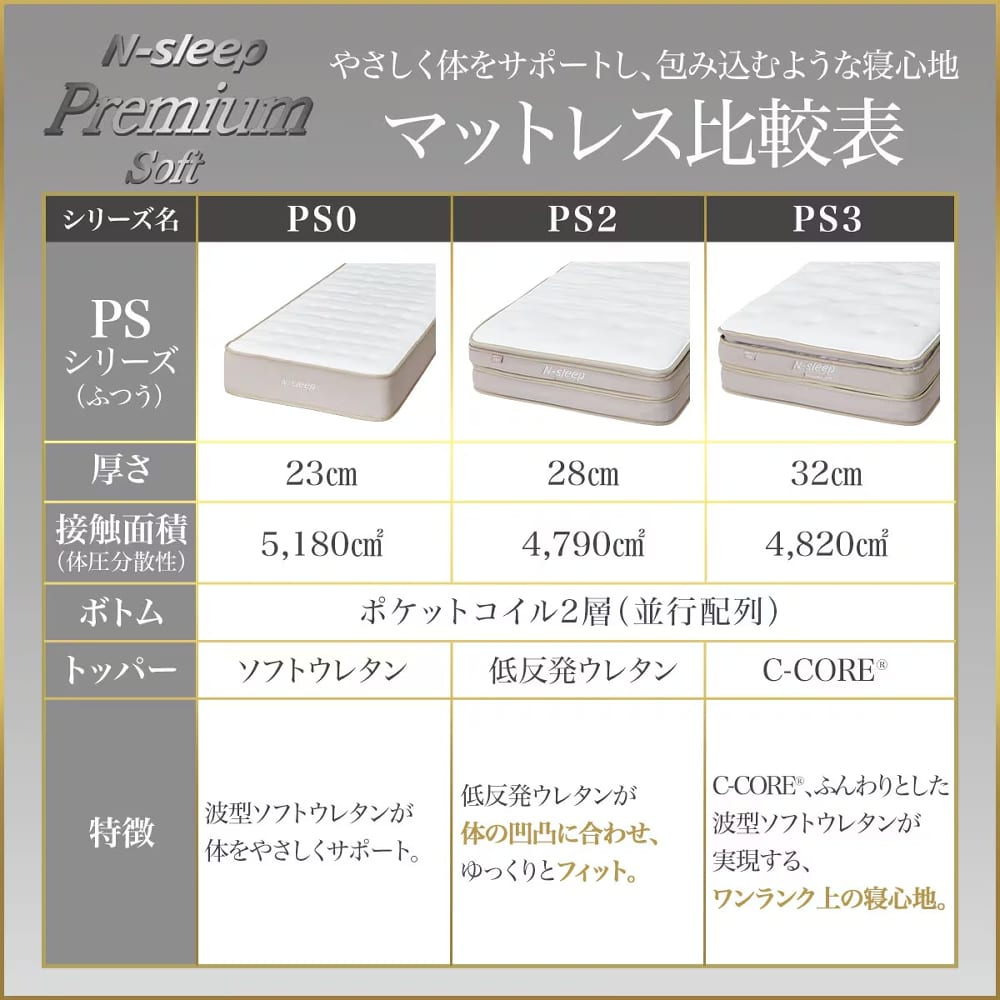 【 PS0】シリーズ。こちらはダブルサイズです。◆2層構造のポケットコイルを採用したマットレスは、耐久性と体圧分散性に優れており、やさしく体をサポートしながら包み込まれるような寝心地を実現しています。