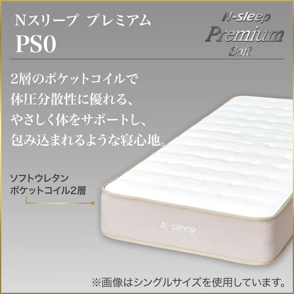 【 PS0】シリーズ。こちらはクイーンサイズです。◆2層構造のポケットコイルを採用したマットレスは、耐久性と体圧分散性に優れており、やさしく体をサポートしながら包み込まれるような寝心地を実現しています。