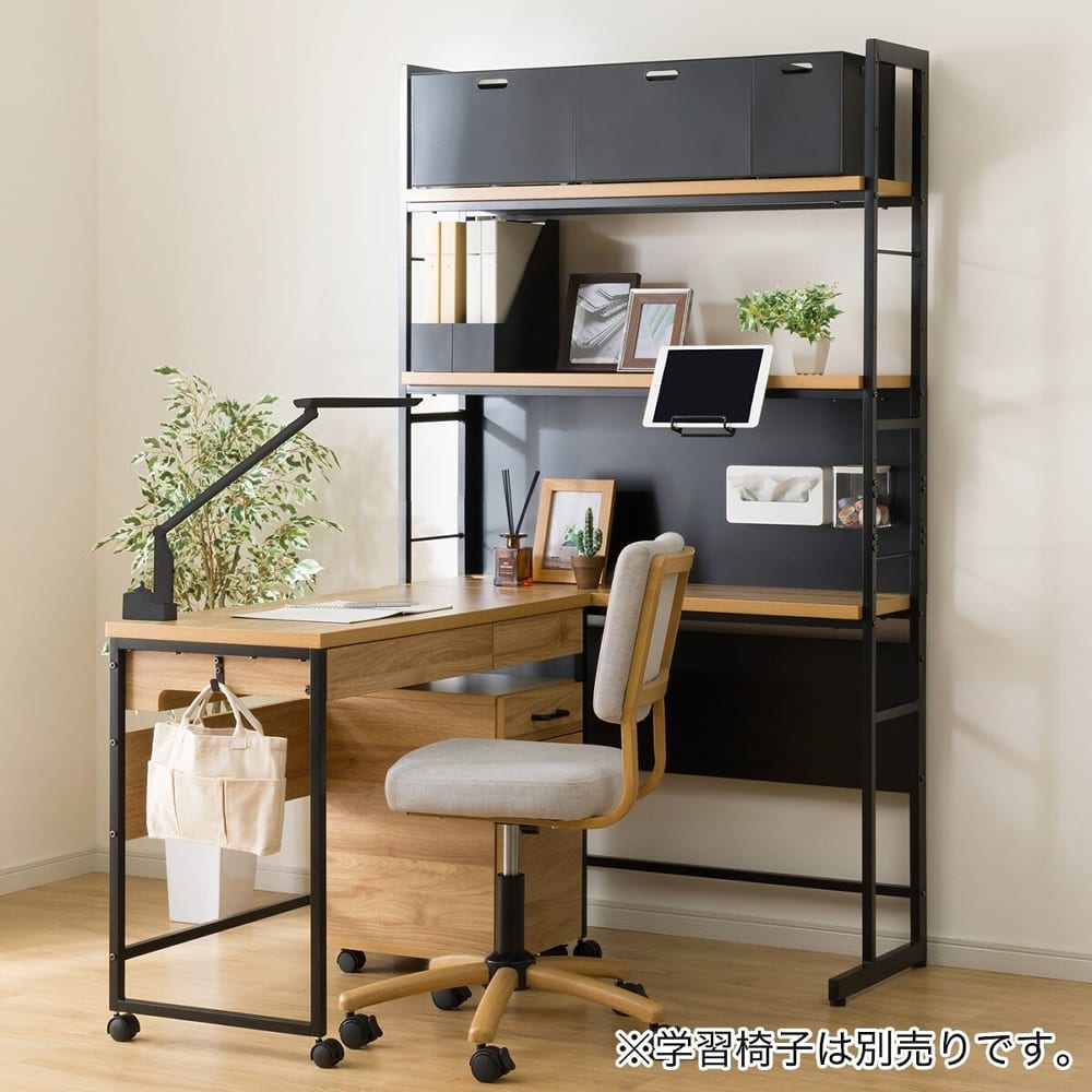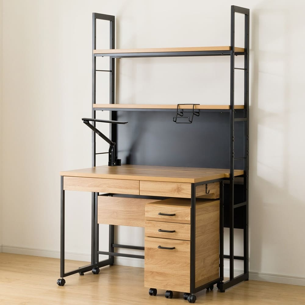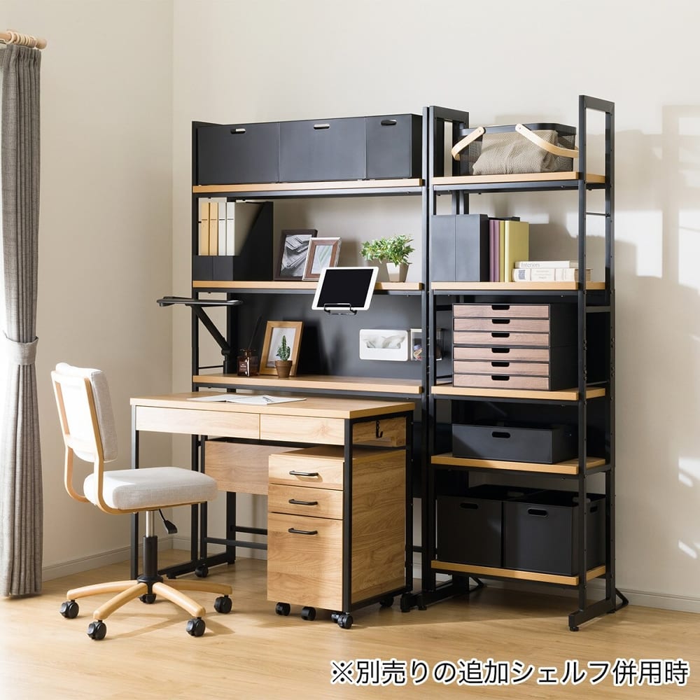 ◆シンプルで使いやすいデザインと高い収納力が魅力のシェルフデスクです。◆ナチュラルな木目調の天板とスチールフレームの組み合わせが、さまざまなお部屋に調和します。