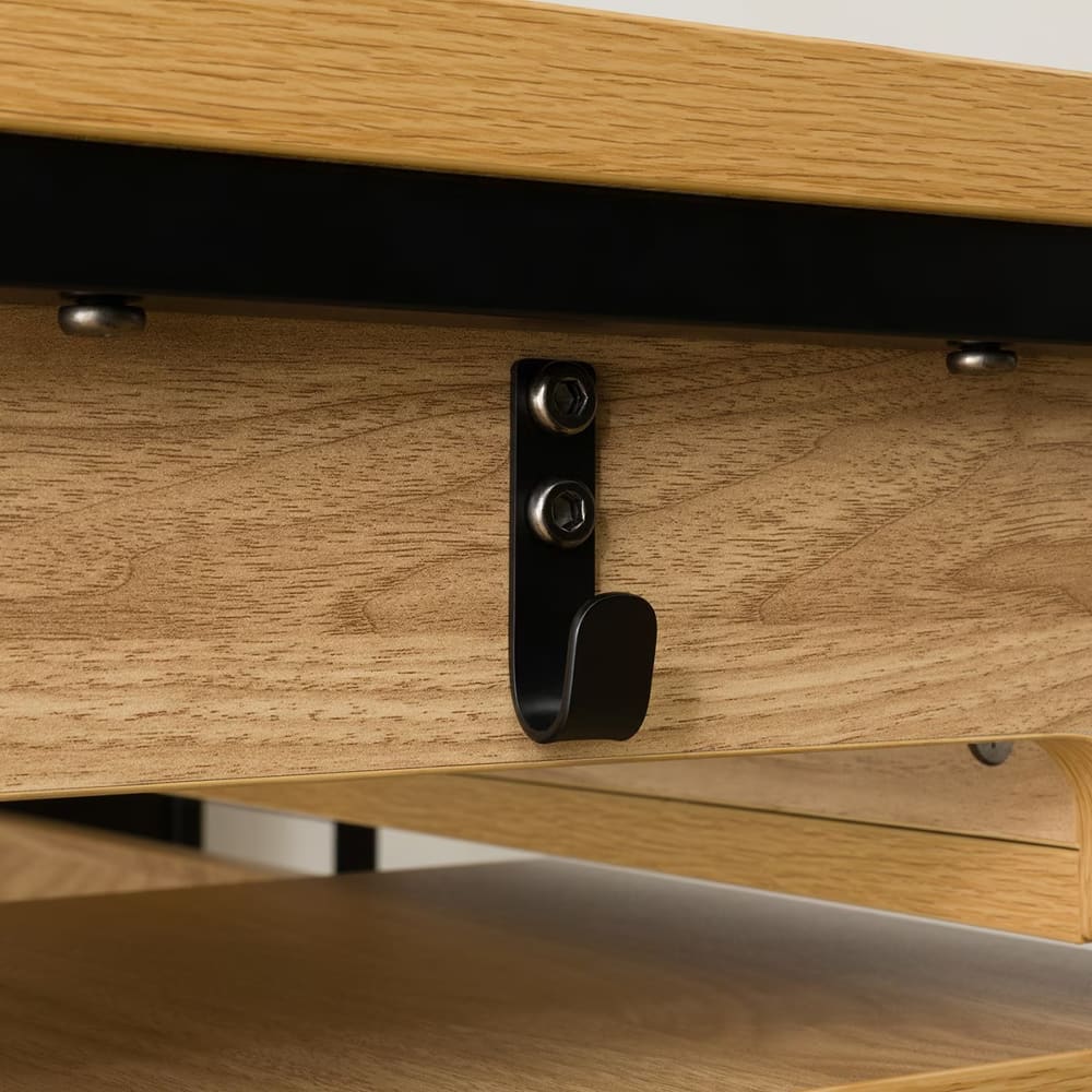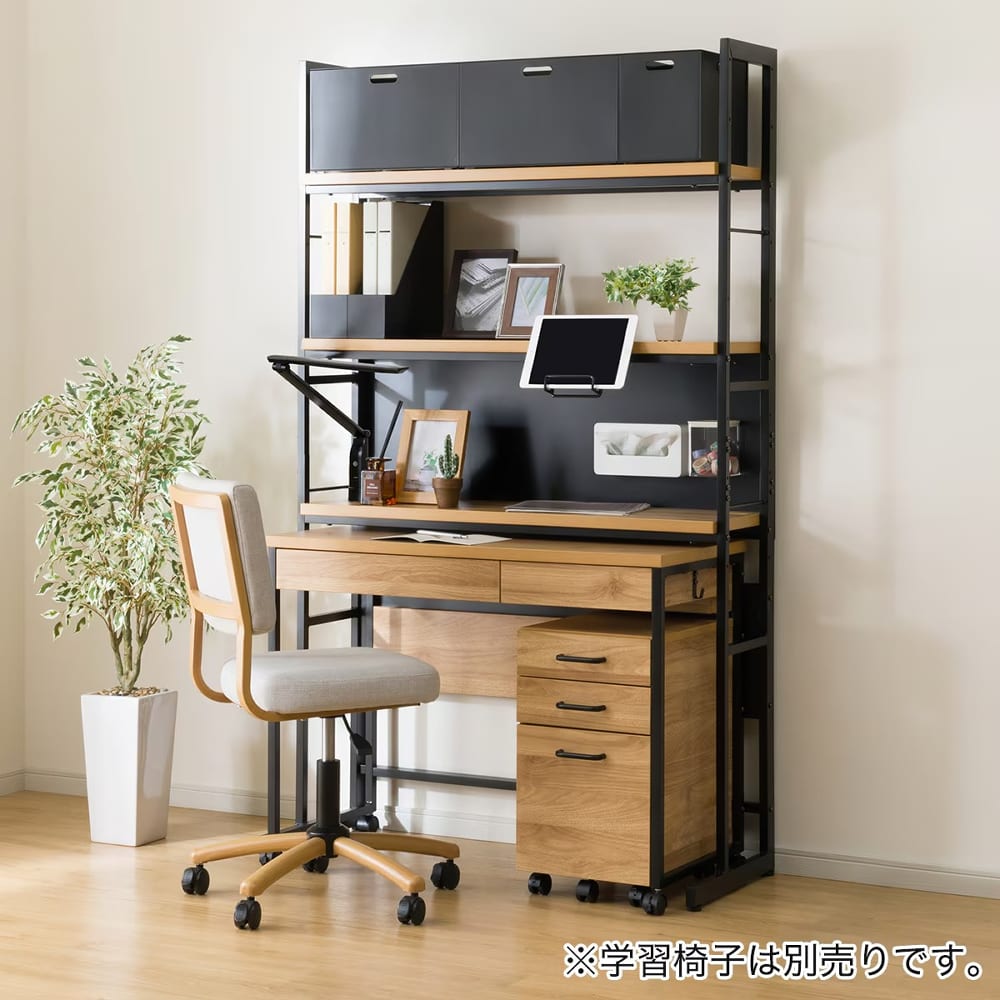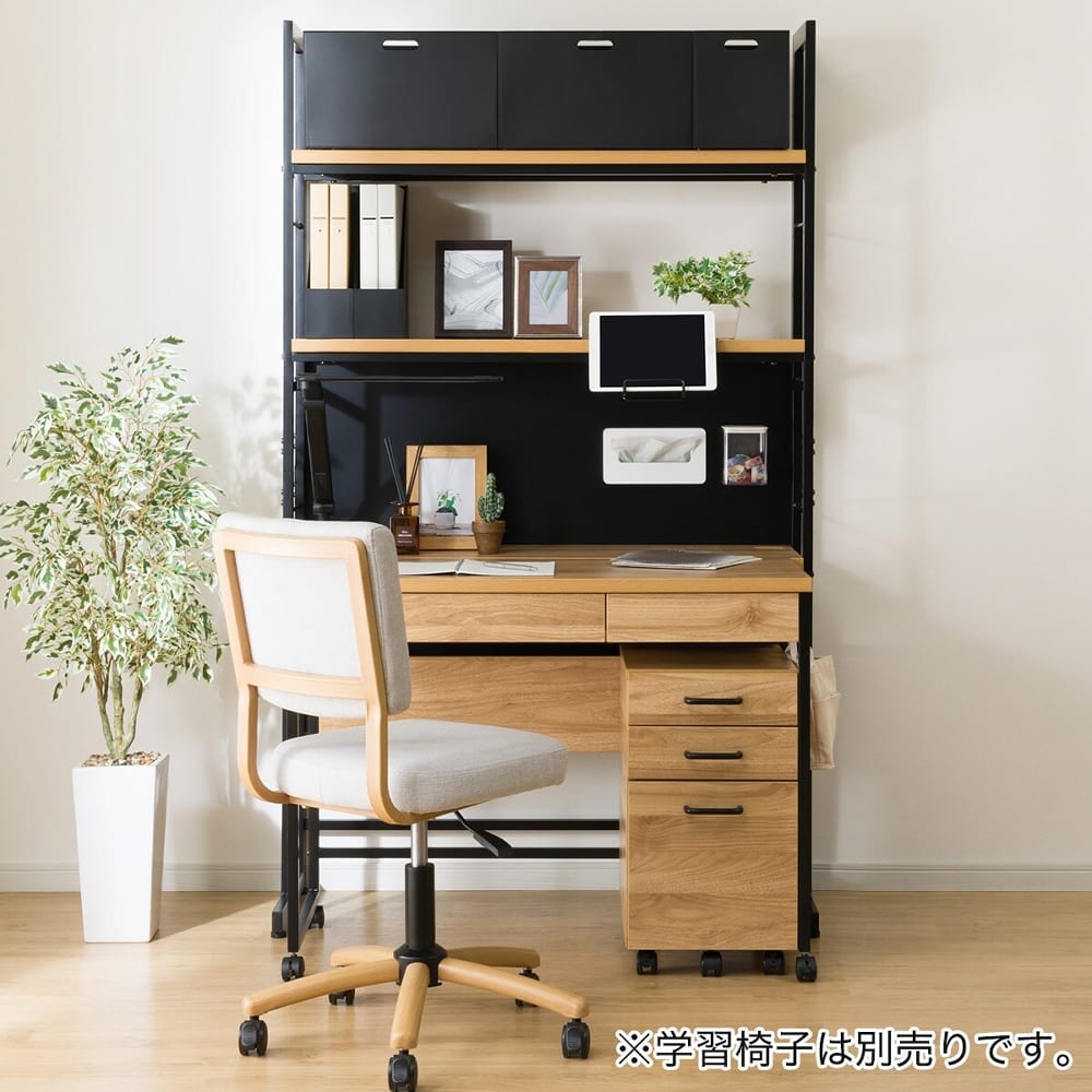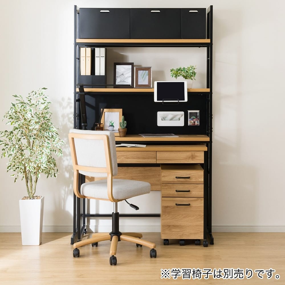 ◆シンプルで使いやすいデザインと高い収納力が魅力のシェルフデスクです。◆ナチュラルな木目調の天板とスチールフレームの組み合わせが、さまざまなお部屋に調和します。