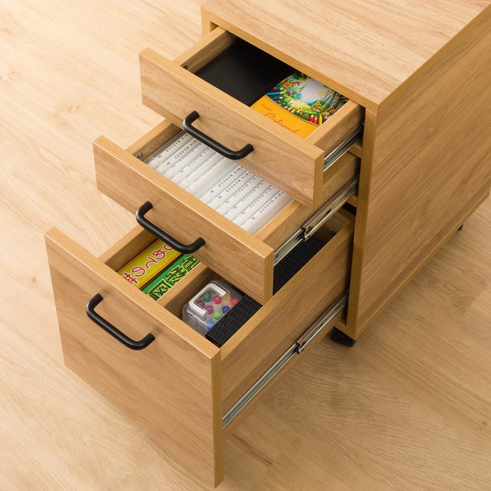 ◆ワゴンや引出しには書類や小物を整理でき、ライト付きで手元も明るく快適。